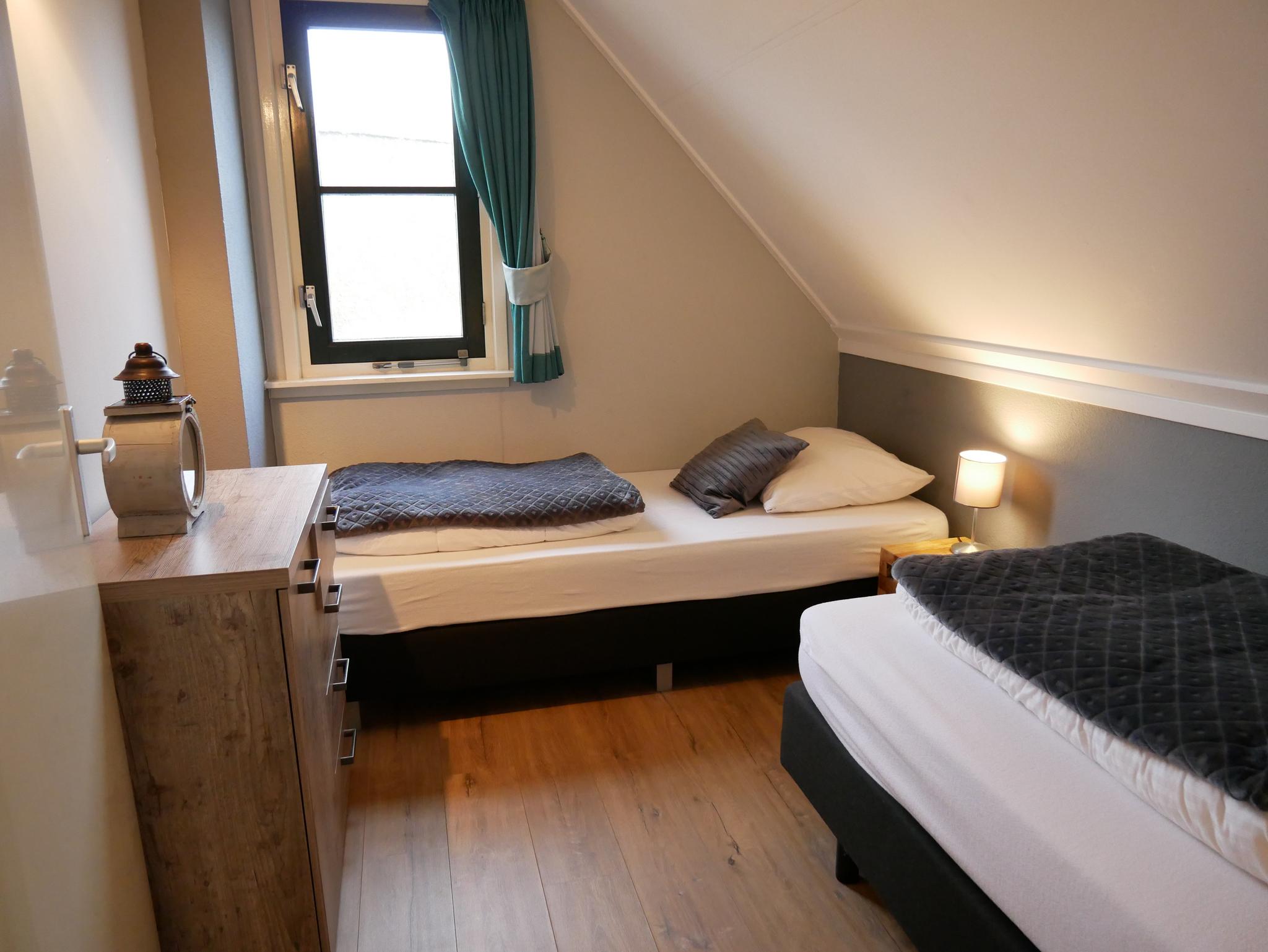 Ein Schlafzimmer im Erdgeschoss mit angrenzendem Badezimmer eignet sich besonders gut für Senioren oder Gäste mit eingeschränkter Mobilität. Die drei weiteren Schlafzimmer im Obergeschoss sind jeweils mit zwei Boxspringbetten, Verdunkelungsmöglichkeiten und hochwertigen Insektenschutzgittern ausgestattet. Zwei moderne Badezimmer mit Dusche, Badewanne, WC, Waschtisch und Föhn sorgen für zusätzlichen Komfort.