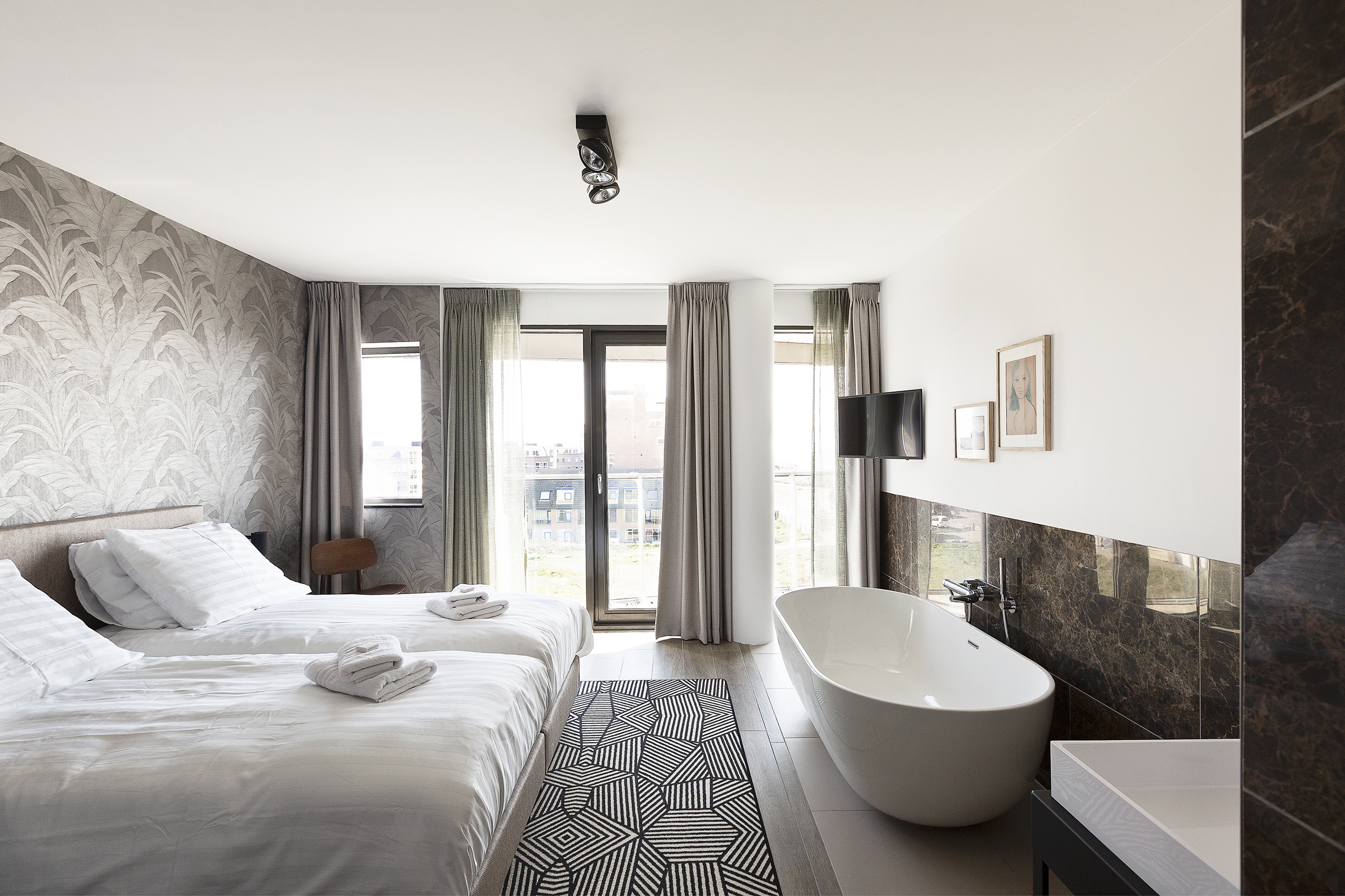 Dieses exklusive Apartment in Egmond aan Zee ist stilvoll mit hochwertigen Materialien eingerichtet. Die Dream Suiten bieten einen atemberaubenden Blick auf die Nordsee, sodass Sie die Umgebung von der Terrasse oder dem Wohn- und Esszimmer aus in vollen Zügen genießen können. Hier erleben Sie einen unvergesslichen Strandurlaub inmitten von Luxus und Sonnenschein.