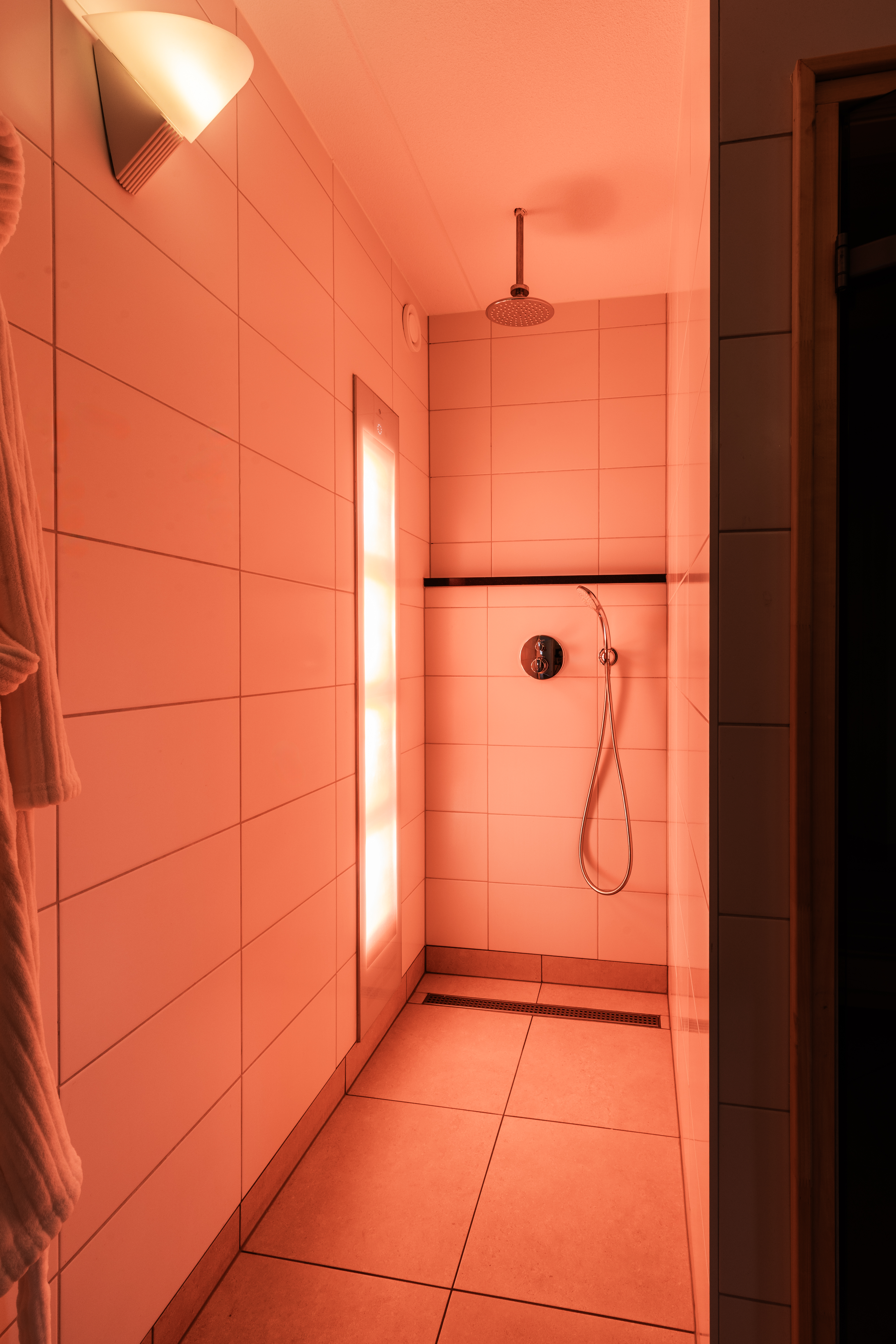 Im Erdgeschoss befinden sich der Eingangsbereich mit separatem WC, ein großzügiger Wohnraum sowie ein exklusives Wellnessbad. Hier steht Entspannung ganz im Mittelpunkt mit einem Whirlpool, einer traditionellen Aufgusssauna und einer Regendusche mit Sunshower. Das stimmungsvolle Wohnzimmer ist mit Fußbodenheizung und Kamin ausgestattet und lädt zum gemeinsamen Entspannen ein. Durch die Flügeltüren gelangen Sie auf die Terrasse mit hochwertiger Gartenmöbelgarnitur und Sonnenschirm, perfekt, um die Zeit im Freien zu genießen. Die offene Küche ist modern und vollständig ausgestattet.