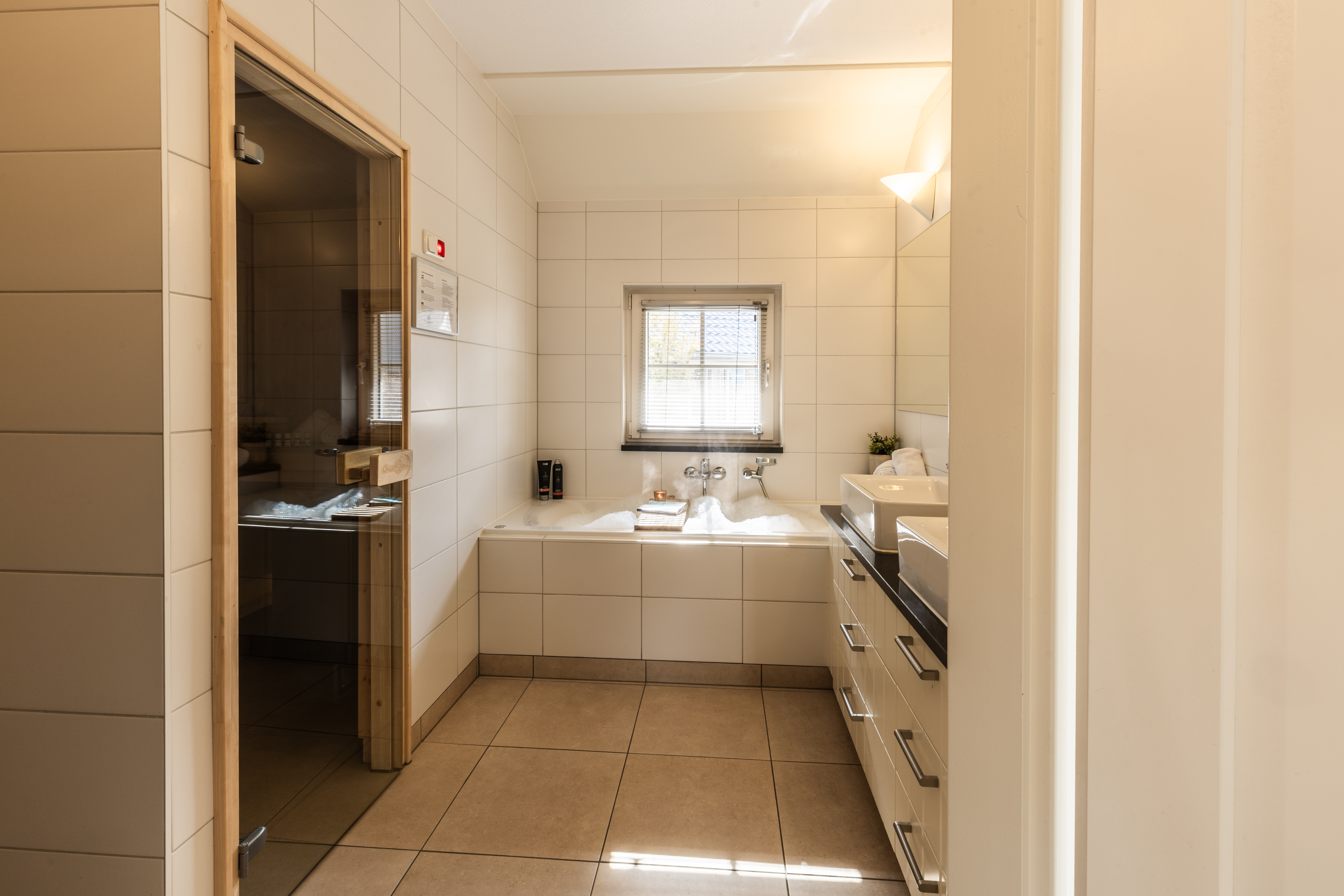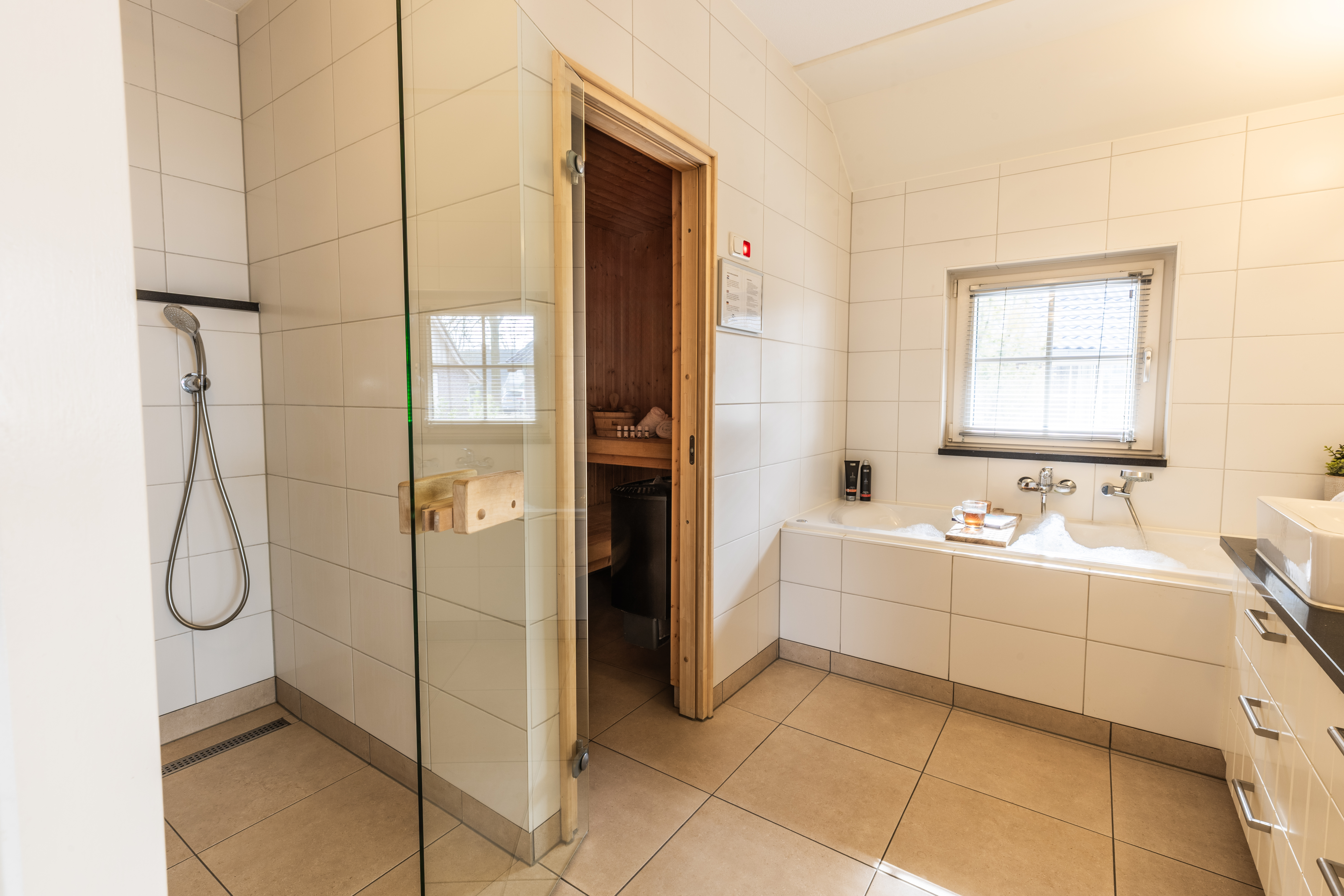 Die Villa Beukelaer Wellness Plus für 4 Personen bietet eine komfortable Mischung aus Raum, Luxus und einer warmen Urlaubsatmosphäre. Diese Lodge ist ideal für alle, die Wellness und gemütliches Beisammensein in einer übersichtlichen und stilvollen Unterkunft genießen möchten.