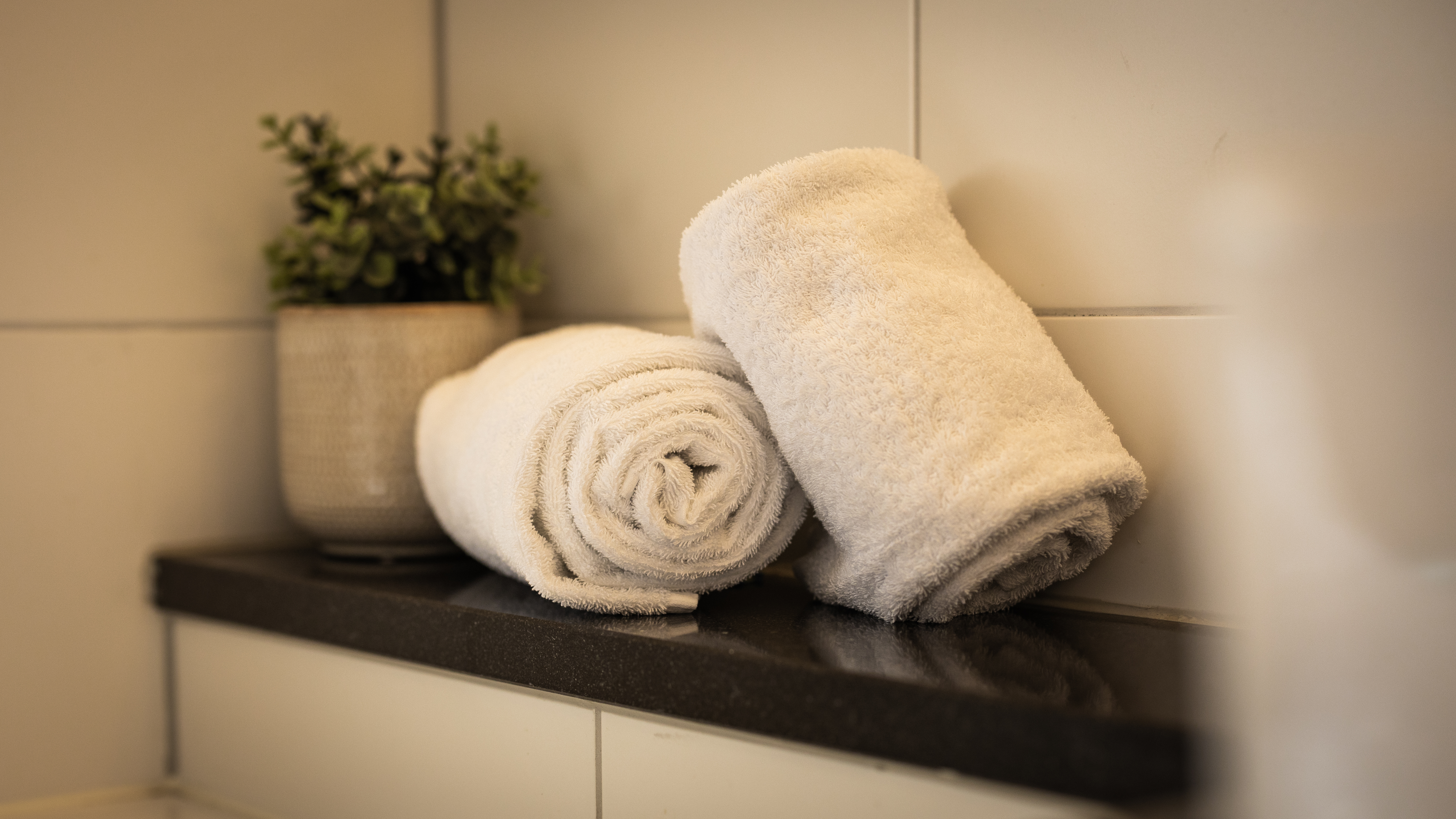 Im ersten Obergeschoss befinden sich zwei großzügige und komfortable Schlafzimmer, beide mit luxuriösen Boxspringbetten ausgestattet.