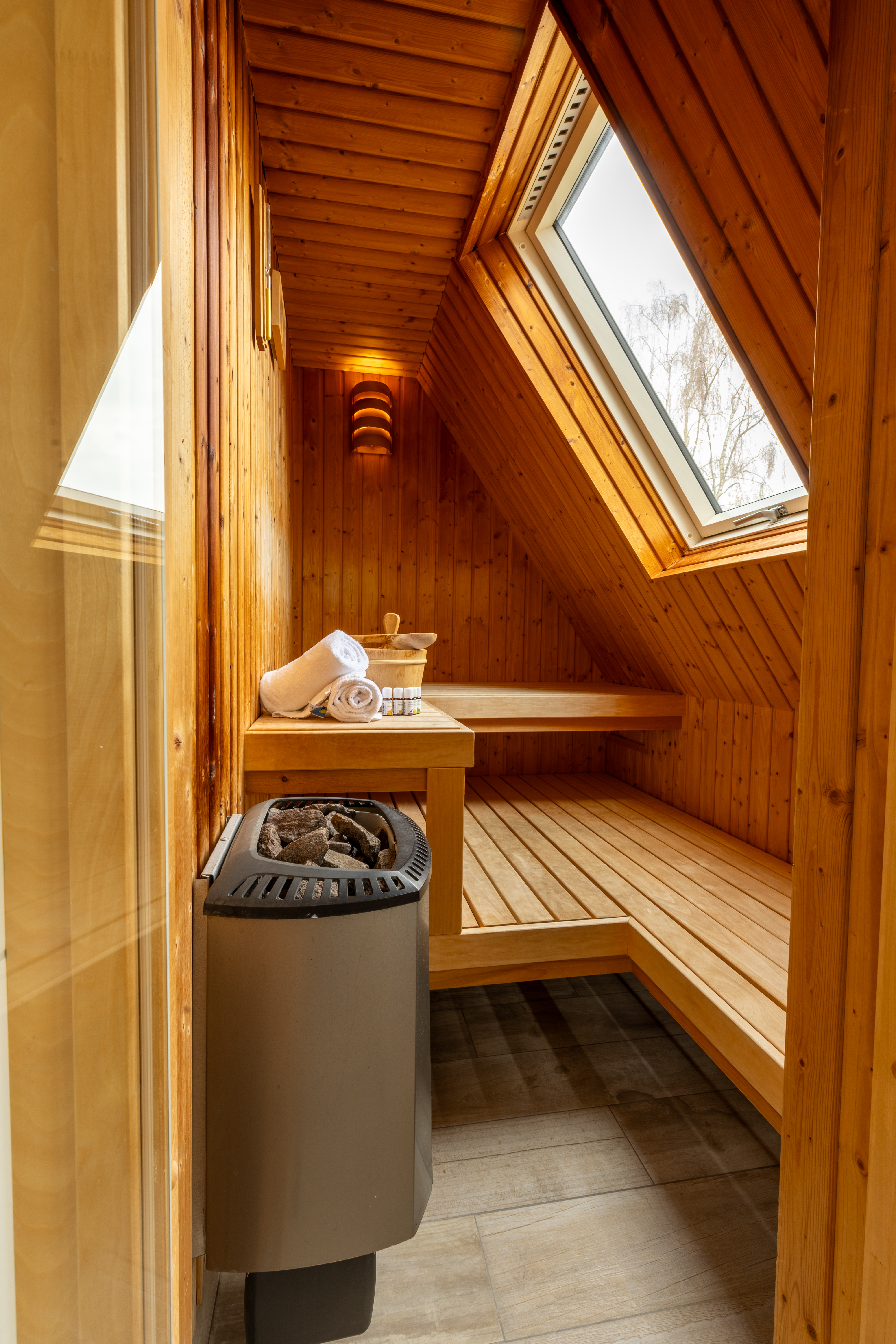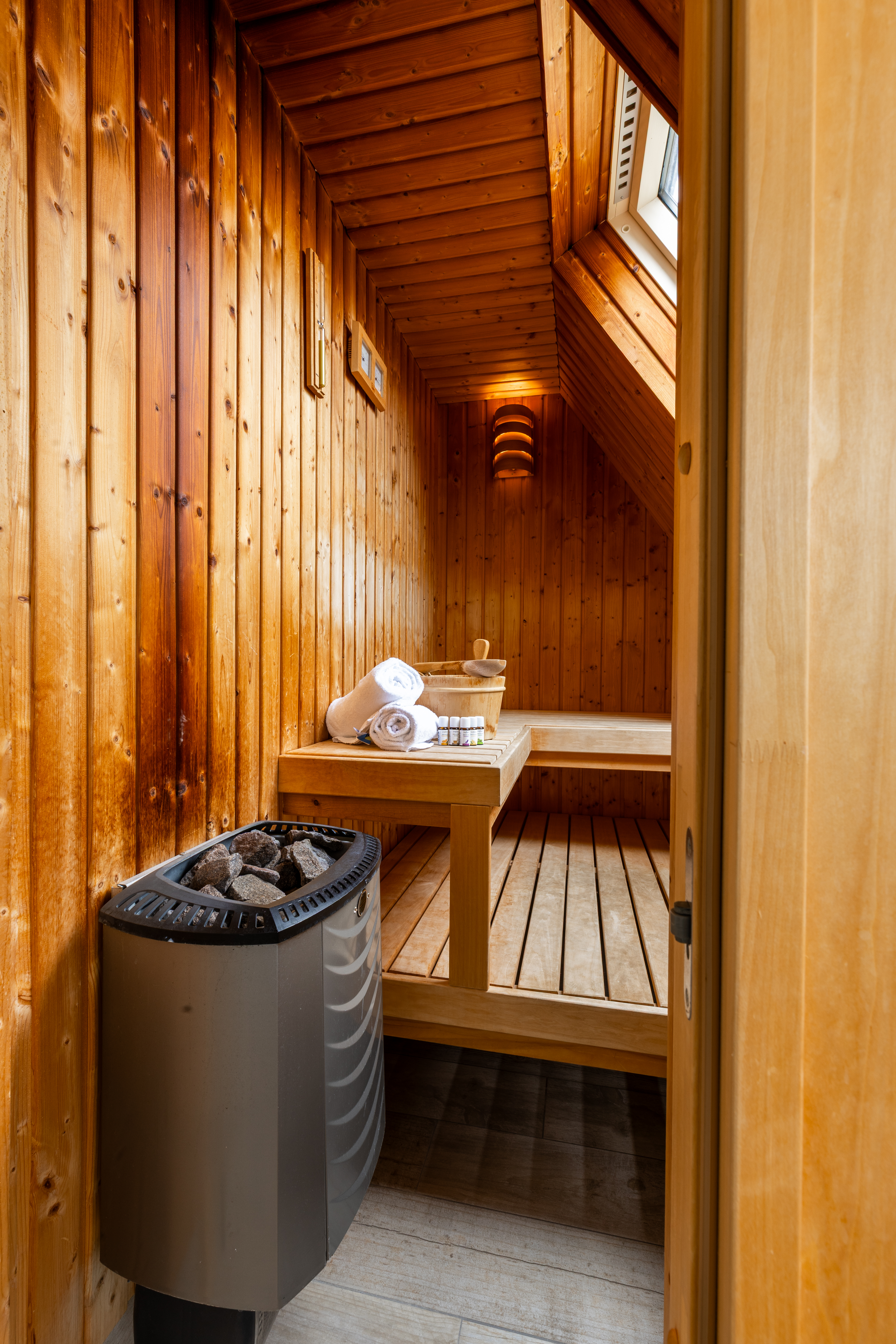 Für ultimative Wellness während Ihres Aufenthalts verfügt die Villa über eine traditionelle Aufgusssauna oder eine Infrarotsauna. Hier können Sie vollkommen abschalten und pure Entspannung in Ihrem eigenen Ferienhaus genießen.