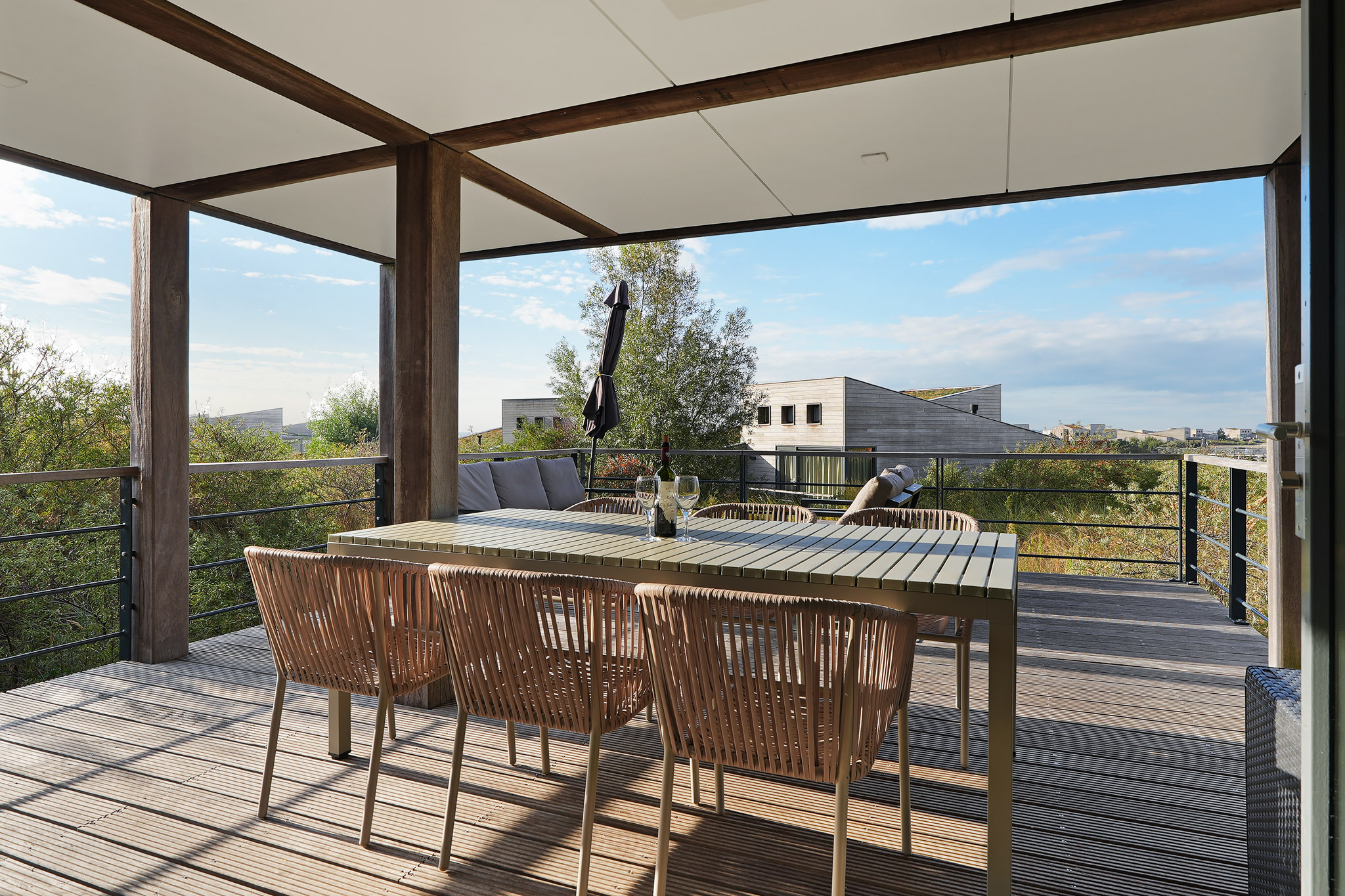 - Möblierte Terrasse mit Blick auf die Dünen und/oder das Wasser