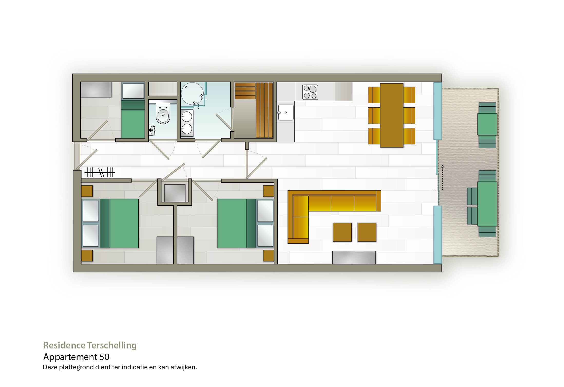 Weitere Informationen zum ParkDer Urlaubsort befindet sich in einer einzigartigen exklusiven Lage auf der wunderschönen Insel Terschelling. Nur wenige Gehminuten vom charmanten Dorf Midsland entfernt und in der Nähe des Strandes, der Dünen und des Waldes. Lassen Sie sich von den vielen Einrichtungen für Jung und Alt überraschen, die das Resort zu bieten hat. Es gibt einen Innenpool, eine Sauna, ein Türkisches Bad, ein Piratenschiff, einen Spielplatz, Tischfußball, einen Billardtisch, eine Spielecke und vieles mehr. Nach einem Tag mit frischer Luft ist es großartig, nach Résidence Terschelling zurückzukehren. Die Apartments sind komplett ausgestattet und bieten Ihnen viel Komfort während Ihres Aufenthalts. Einige Apartments verfügen über eine private Sauna und / oder ein Solarium. Entspannen Sie in der Résidence Terschelling.