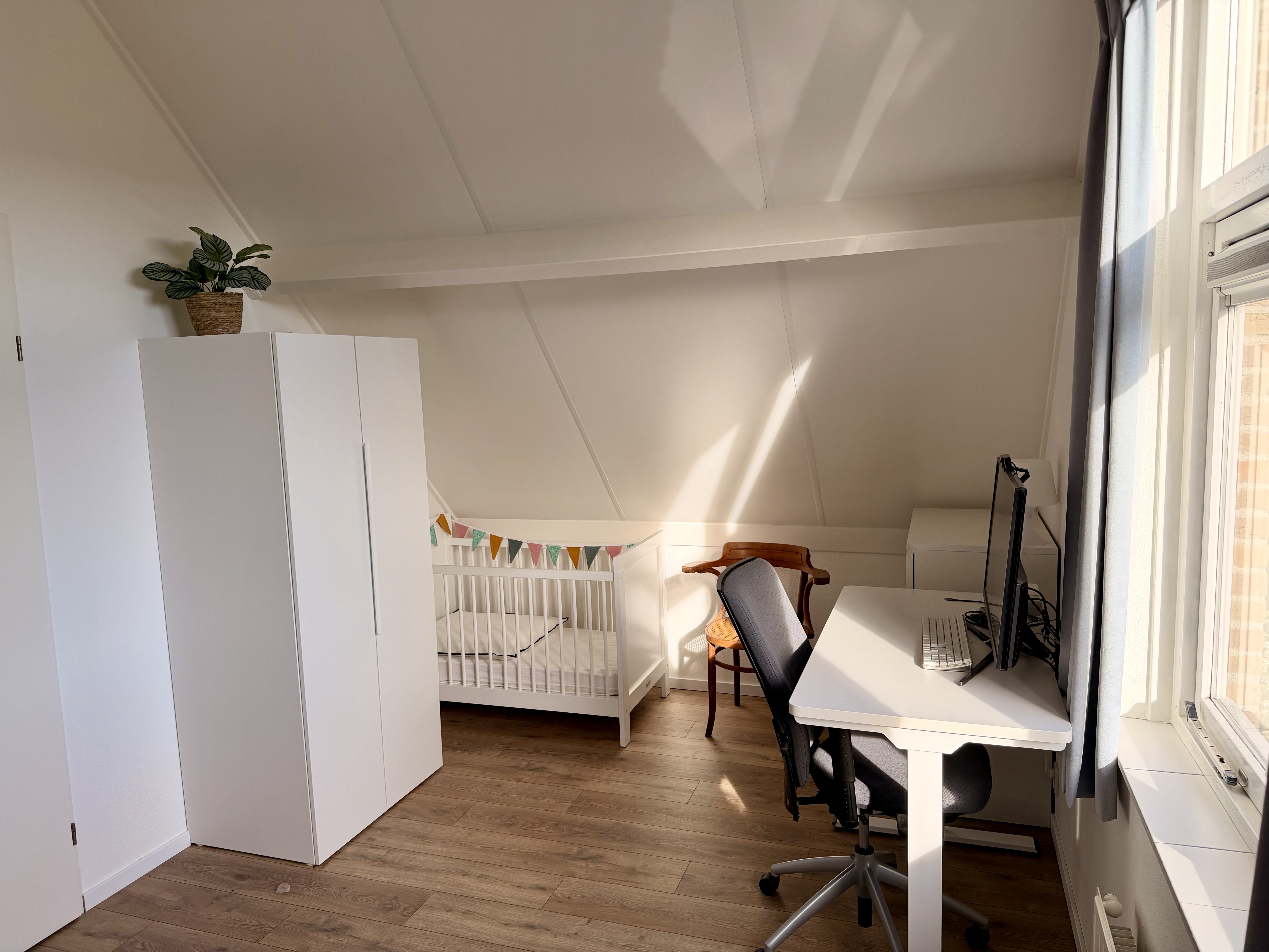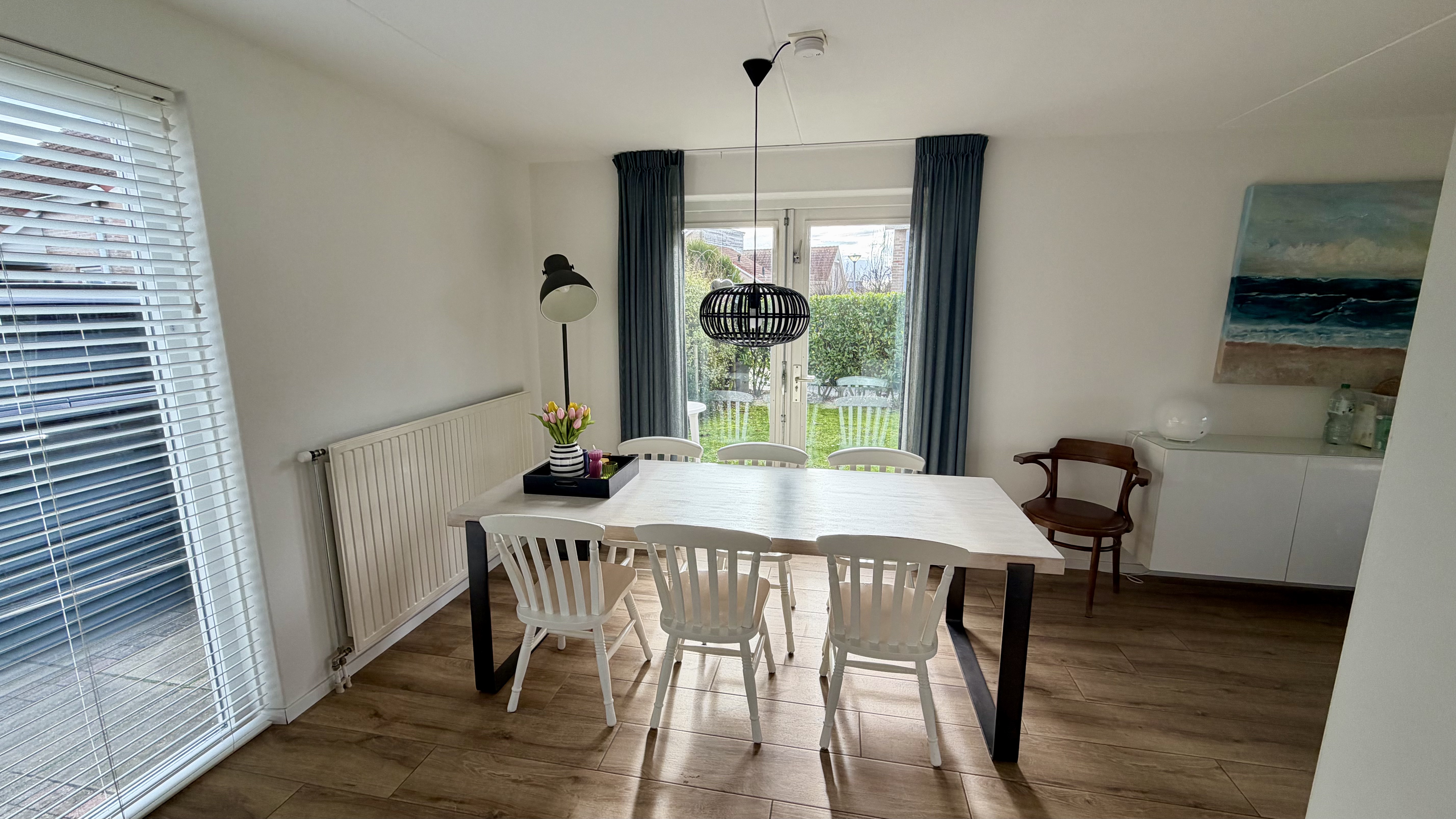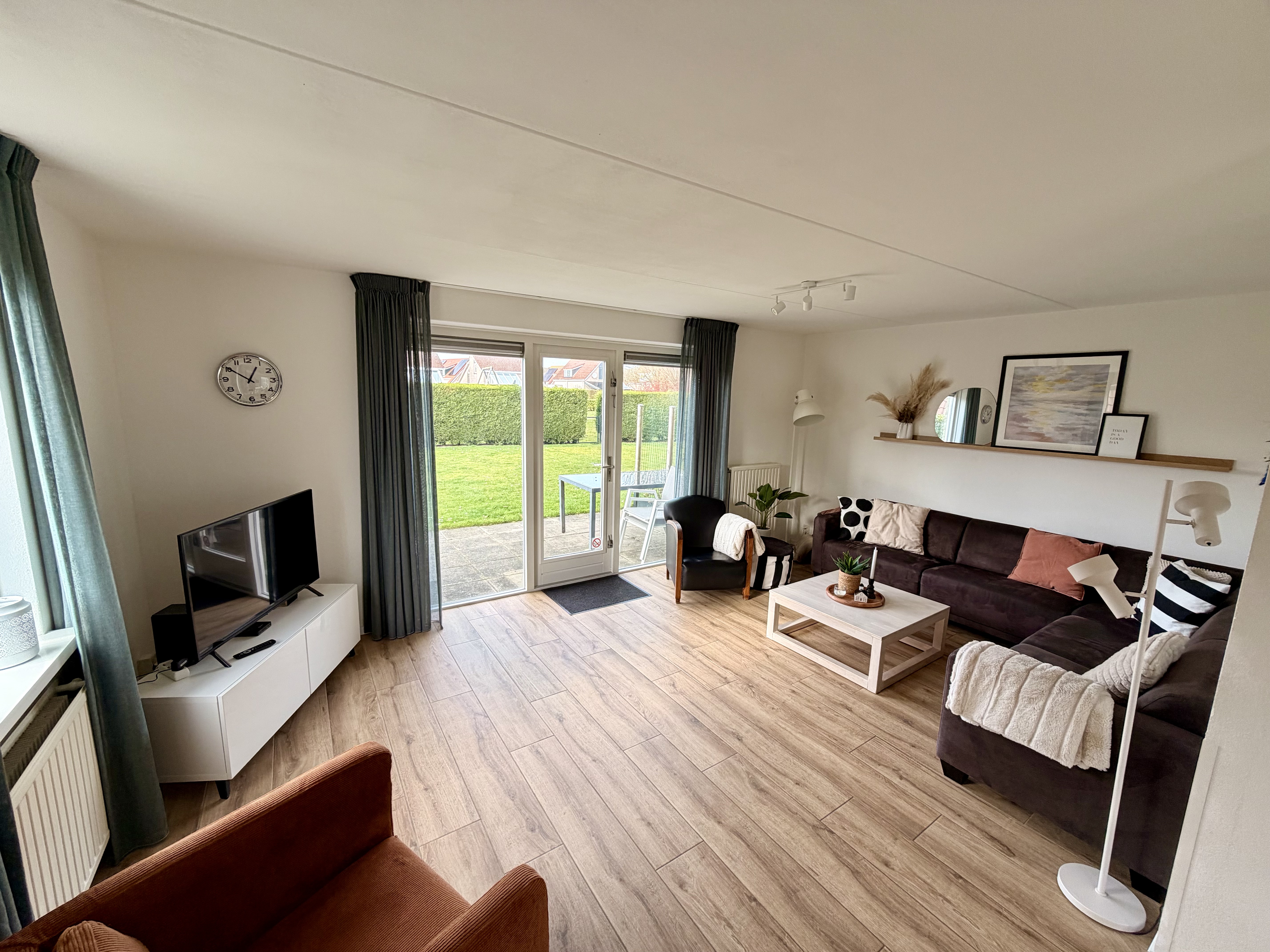 Der Außenbereich überzeugt mit einem sonnigen, umzäunten Garten, der nach Südwesten ausgerichtet ist und direkt an einen Spielplatz grenzt. Eine Terrasse mit Markise sowie Gartenmöbel laden zum Entspannen ein. Es stehen zwei Parkplätze direkt am Haus zur Verfügung. Zur weiteren Ausstattung gehören Waschmaschine, Trockner und Staubsauger.