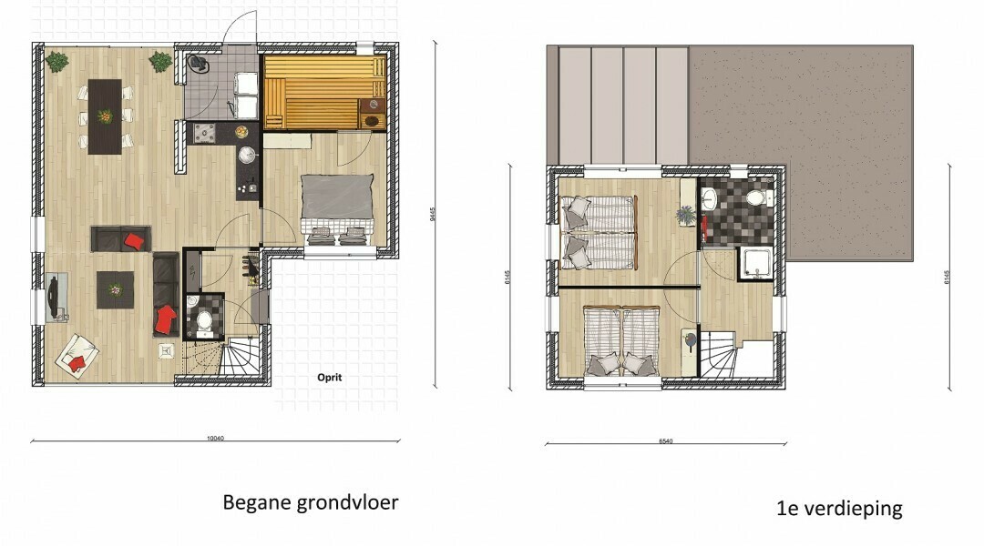 Im Erdgeschoss befinden sich der Eingangsbereich, das Wohnzimmer mit gemütlichem Sitzbereich und ein großzügiger Wintergarten. Ebenfalls im Erdgeschoss liegen ein Schlafzimmer, eine Sauna mit separater Dusche sowie eine zusätzliche Toilette. Der Boden im Wohnbereich ist mit pflegeleichtem Laminat ausgestattet.