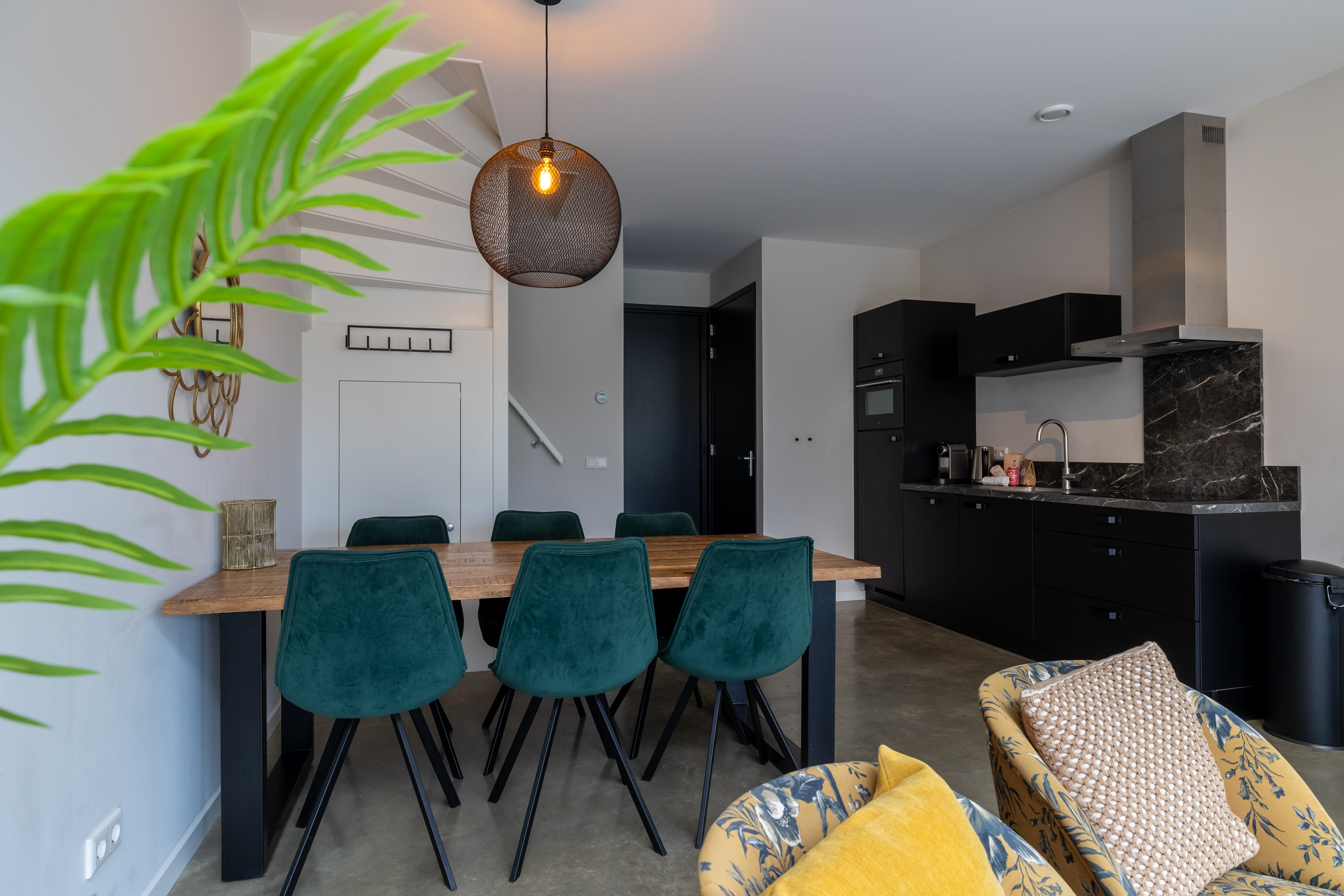 Dieses wunderschöne Ferienhaus liegt auf einem idyllischen Mini-Campingplatz, nur 1.500 Meter vom Strand entfernt – ein perfekter Rückzugsort für Familien, Freunde oder Hundebesitzer. Die Unterkunft gehört zur beliebten Anlage Uitspanning Oranjezon, die direkt an den Fahrradwegen und am Fuße des beeindruckenden Dünen- und Naturschutzgebiets Oranjezon liegt. Das Ferienhaus wurde in einer ehemaligen Bauernscheune erbaut und verbindet historischen Charme mit modernem Komfort. Die geschmackvolle Einrichtung und die helle, offene Raumgestaltung schaffen eine warme, einladende Atmosphäre. Die luxuriöse Küche ist vollständig ausgestattet mit einem Kühlschrank mit Gefrierfach, Geschirrspüler, Kombi-Mikrowelle, Toaster, Wasserkocher, Induktionskochfeld und einer L’Or-Kapselkaffeemaschine. Der großzügige Wohnbereich bietet viel Platz zum Entspannen und führt direkt auf die sonnige Terrasse, auf der Sie die ruhige Umgebung genießen können.