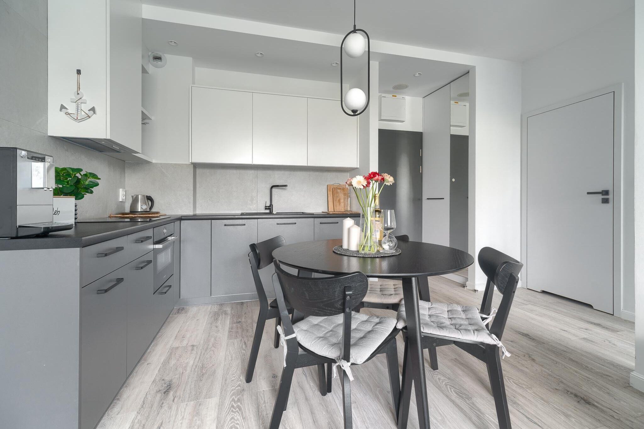 Geräumige und komfortable Wohnung im Erdgeschoss. Es besteht aus einem Wohnzimmer, das mit der Küche verbunden ist, einem Schlafzimmer und einem Badezimmer mit Dusche (es gibt auch eine Waschmaschine). Das Wohnzimmer verfügt über ein Doppelschlafsofa, einen Tisch mit Stühlen und einen Fernseher. Im Schlafzimmer steht ein Doppelbett. Die Küche ist perfekt ausgestattet (u.a. Backofen, 4-Flammen-Herd, Mikrowelle, Geschirrspüler). Die Wohnung verfügt über eine überdachte Terrasse mit Loungemöbeln und einem kleinen privaten Gartenstück, in dem Sie sich auf einem Liegestuhl niederlassen können. Zentralheizung. WLAN ist verfügbar. Auch mit Bügeleisen und Bügelbrett ausgestattet. Kostenlose Parkplätze stehen vor Ort zur Verfügung.