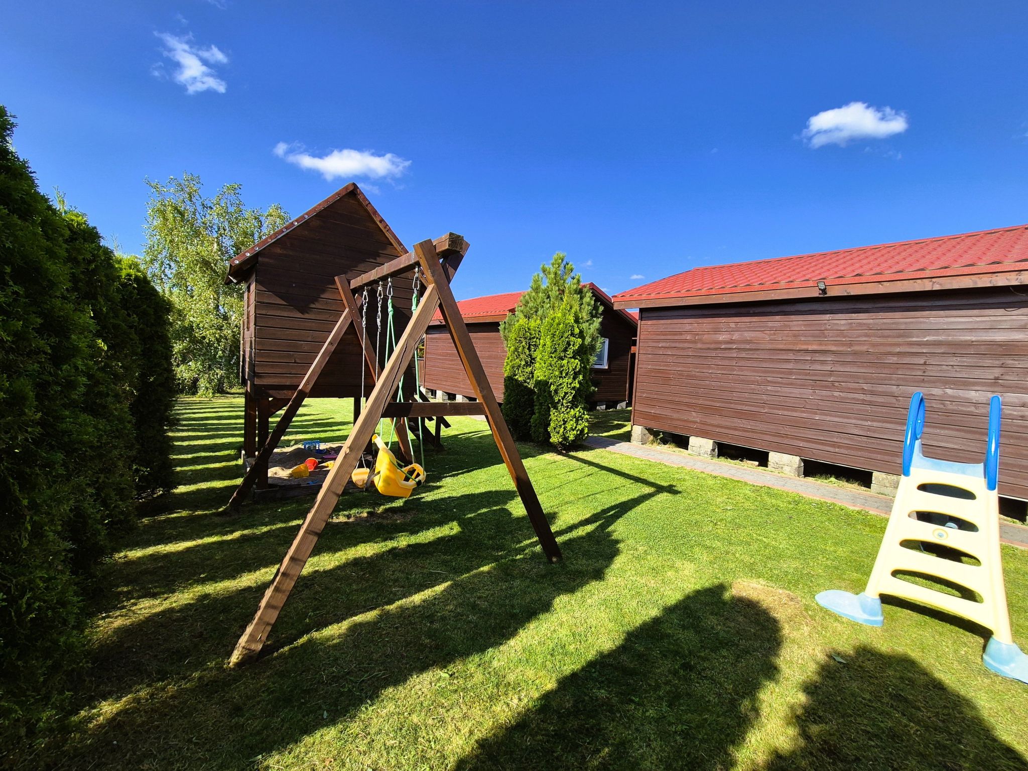 Wir laden Sie ein, den Charme eines Urlaubs am Meer in unseren gemütlichen Ferienhäusern in Rusinowo zu entdecken, wo wir ideale Bedingungen für eine Gruppe von bis zu 5 Personen bieten, die Entspannung und Nähe zur Natur suchen. In der malerischen Gegend der Ostseeküste gelegen, bieten unsere Unterkünfte nicht nur Ruhe und Erholung, sondern auch einen leichten Zugang zum Strand und die Möglichkeit, zahlreiche lokale Attraktionen zu genießen. Dies ist der perfekte Ort zum Entspannen mit der Familie oder mit Freunden, wo Sie sowohl die Sonne als auch die kühle Meeresbrise genießen können. Die Inneneinrichtung jedes Ferienhauses wurde sorgfältig entworfen, um ein Maximum an Komfort und Funktionalität zu bieten. Die Zimmer sind geräumig und gut belichtet, so dass Sie lange Sommerabende genießen können. Praktische Annehmlichkeiten wie ein Wäschetrockner, eine Kapselkaffeemaschine und ein Wasserkocher sorgen dafür, dass jeder Aspekt Ihres Aufenthalts so ist, wie Sie es sich erträumt haben. Der Zugang zum beheizten Gemeinschaftspool sorgt für zusätzliche Abkühlung an heißen Tagen. Im Außenbereich verfügt jedes Ferienhaus über eine geräumige Terrasse, die zum Entspannen im Freien oder zum abendlichen Grillen einlädt. Die Terrasse, die den Gästen zur Verfügung steht, ist mit geeigneten Möbeln, einem Sonnenschirm und einem Grill ausgestattet, so dass jeder Moment, den man hier verbringt, etwas Besonderes ist. Außerdem gibt es einen Spielplatz für die Kleinsten, was unsere Anlage familienfreundlich macht. Die Nähe zum Meer (900 m) lädt zu langen Strandspaziergängen und zum Baden im Meer ein. Der 3 km entfernte See ist eine zusätzliche Attraktion für Wasserratten. Das Dorfzentrum, das nur 1200 m entfernt ist, bietet eine Vielzahl von Unterhaltungsmöglichkeiten, Geschäften und Restaurants, in denen man lokale Spezialitäten probieren kann. Für Besitzer von Vierbeinern gibt es außerdem einen Hundestrand in 900 m Entfernung, der allen Tierfreunden eine angenehme Umgebung bietet. Wenn Sie auf der Suche nach einem Ort sind, der die Nähe zur Natur mit Komfort und Zugang zu einer Vielzahl von aktiven Freizeitaktivitäten verbindet, sind unsere Ferienhäuser in Rusinowo die perfekte Wahl. Gönnen Sie sich ein bisschen Luxus inmitten grüner Landschaften und wir sorgen für einen unvergesslichen Aufenthalt an der polnischen Küste. Basisinformationen - Erlaubte Haustiere: 3 - Unterkunftstyp: Ferienhaus - befindet sich in: Anlage - Gesamtanzahl d. Stockwerke im Gebäude über EG: 0 - Grundstücksfläche: 2000 m² - freistehend - Schlafzimmeranzahl: 2 - Badezimmeranzahl: 1 Top Merkmale - WLAN - Klimaanlage: überall - Heizung: überall - Terrasse - komplett eingefriedet (mit Mauer, Zaun oder Hecke) - Outdoorpool - ? maximale Tiefe: 130 cm - ? Länge: 12000 cm - ? Breite: 400 cm - ? Fläche: 48 m² - ? Poolheizung - Private PKW-Stellplätze insgesamt für diese Unterkunft: 1 - ? davon Garagenstellplätze: keinen - ? davon Carport-Stellplätze: keinen - ? davon private Außen­stellplätze: 1 Schlafen im Wohnbereich - Schlafsofa 2 Personen Schlafzimmer 1 - Doppelbett (1,80m Breite) Schlafzimmer 4 - Etagenbett Badezimmer Badezimmer 1 - Dusche - Waschbecken sanitäre Einrichtungen in der Nähe - Toilette Kochen/Wohnen - Kaffeemaschine: Kapsel-Kaffeemaschine - Kühl-/Gefrierschrank: Tiefkühlschrank, Kühlschrank - Herd: Herd - Toaster - Wasserkocher - Anzahl Esstische: keine - Gesamtzahl Sitzplätze: keine - Anzahl Wohnzimmer: 1 Entertainment - Fernseher: TV Hauswirtschaft - Wäschetrockner: zur alleinigen Nutzung im Objekt Außenbereich - Grill: Grill - Außendusche Umgebung - Aussicht: Meer/See, Garten, Wald, Wiese - nächstgelegene Ortsmitte: 1,2 km - Lebensmittelhandel: 300 m - Cafés/Restaurants: 1,5 km - Hafen: 6,0 km - Strand: 900 m - Hundestrand: 900 m - Sandstrand: 900 m - Wasser (Meer, See etc.): 900 m - Meer: 900 m - See: 3,0 km - Anlegeplatz: 6,0 km - Spielplatz: 0 m - Öffentliches Schwimmbad: 6,0 km - Fahrrad-Verleih: 1 m - Reitmöglichkeit: 6,0 km Besonderheiten - Anglerfreundlich