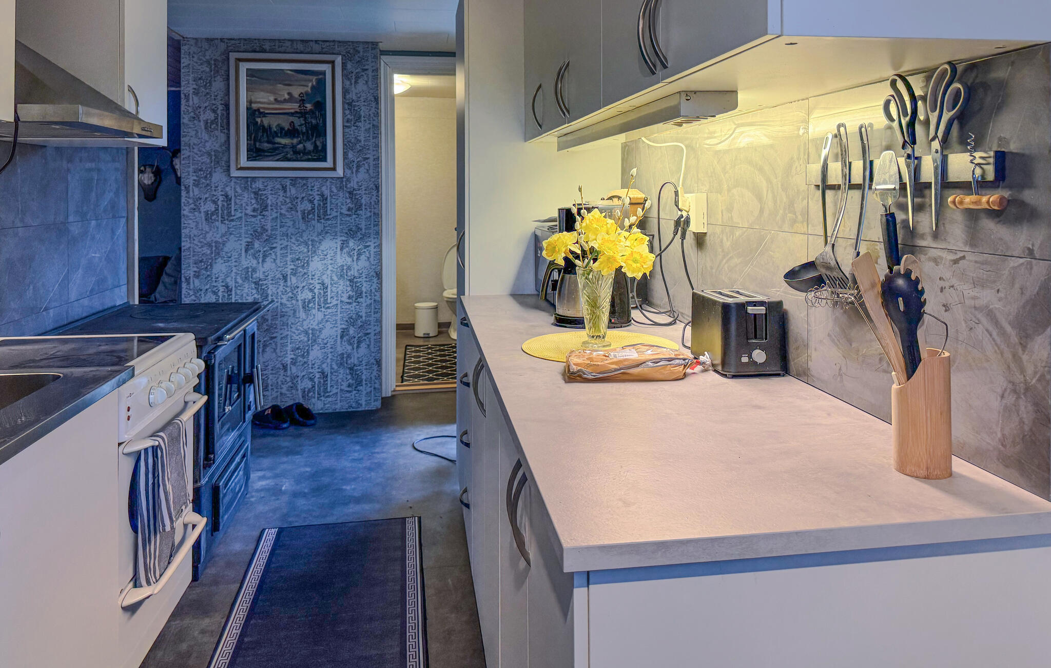 Nehmen Sie im Wohnzimmer mit rustikaler Einrichtung auf dem großen Ecksofa Platz und genießen Sie ruhige Abende bei Gesprächen oder einem Film. Die dekorativen Elemente, Holzmöbel und warmen Farben verleihen den Räumen eine persönliche und wohnliche Note. Nutzen Sie den separaten Essbereich für gemeinsame Mahlzeiten am massiven Holztisch. Bereiten Sie Ihre Gerichte in der funktionalen Küche zu und ziehen Sie sich gelegentlich auch in eine ruhige Ecke zurück, lesen Sie ein Buch oder planen Sie hier Ihre Ausflüge für den nächsten Tag.