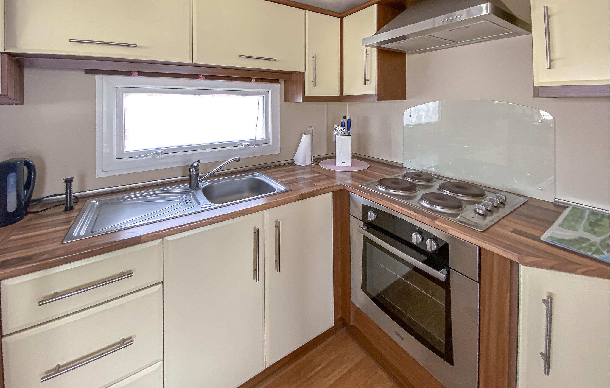 Warm-/Kaltwasser in der KücheElektroherd mit BackofenKühlschrankTiefkühlschrankKaffeemaschineMikrowelleGemeinschafts-Trockner1 TVWC. Warmes und kaltes Wasser