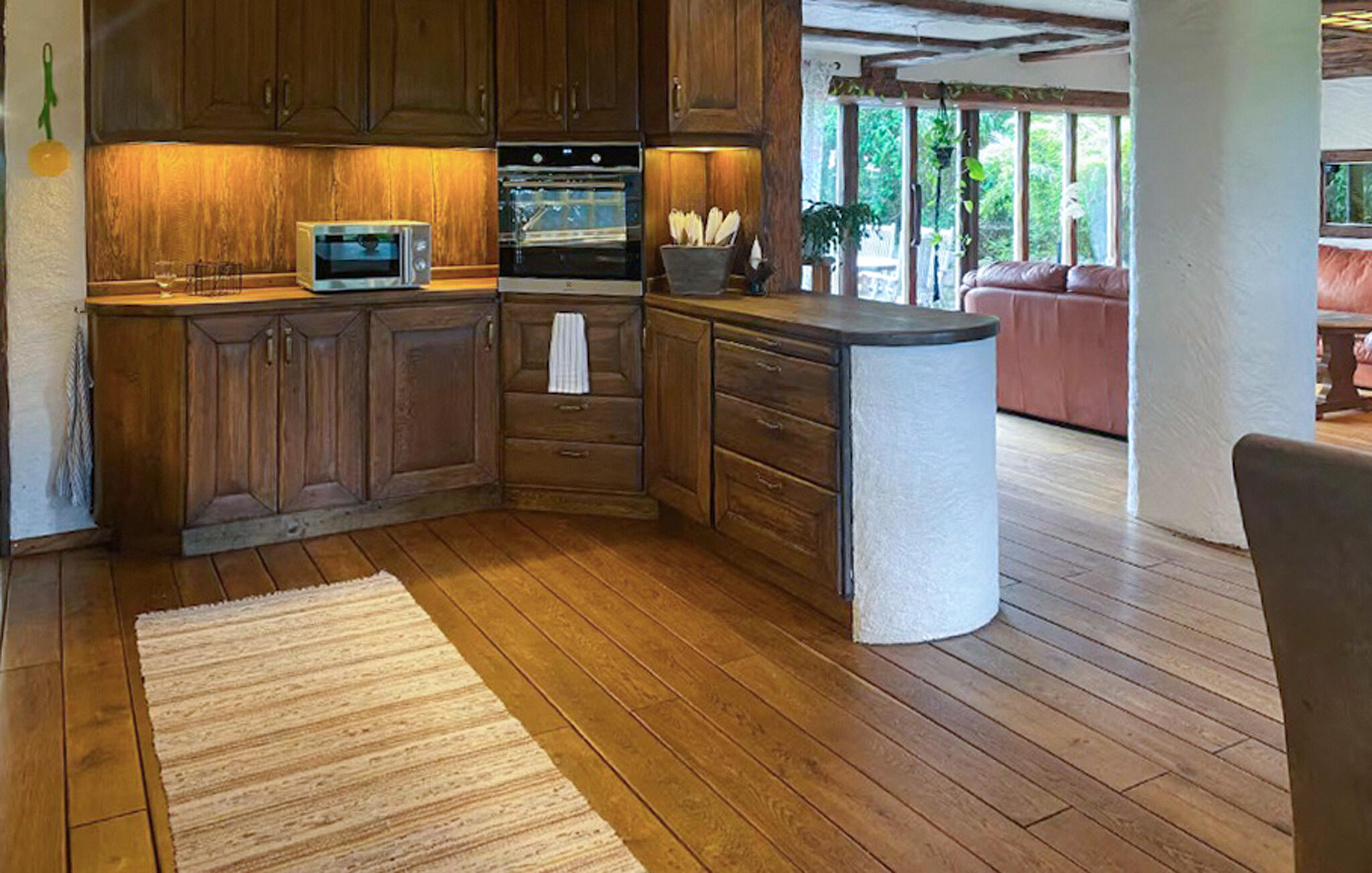 In diesem charmanten Haus schaffen viel warmes Holz und sorgfältig ausgewählte Materialien eine warme und behagliche Atmosphäre, in der Sie sich sofort willkommen fühlen und zur Ruhe kommen. Handwerkskunst und liebevolle Details bestimmen Charakter den Hauses. Entspannen Sie sich bei einer Tasse Kaffee auf dem Sofa, hören Sie Ihre Lieblingsmusik oder zaubern Sie schmackhafte Gerichte in der praktischen Küche.