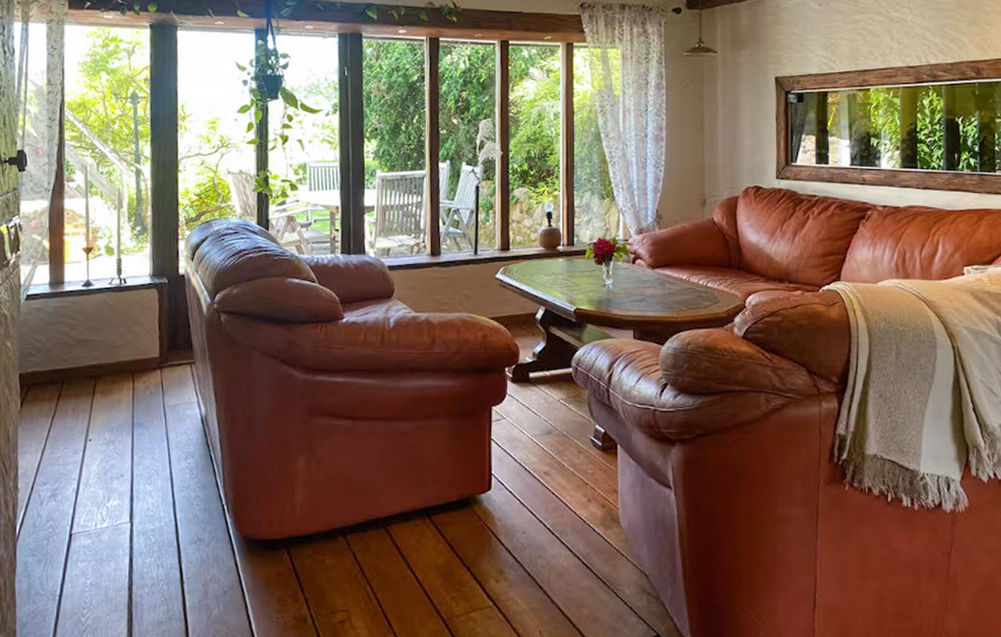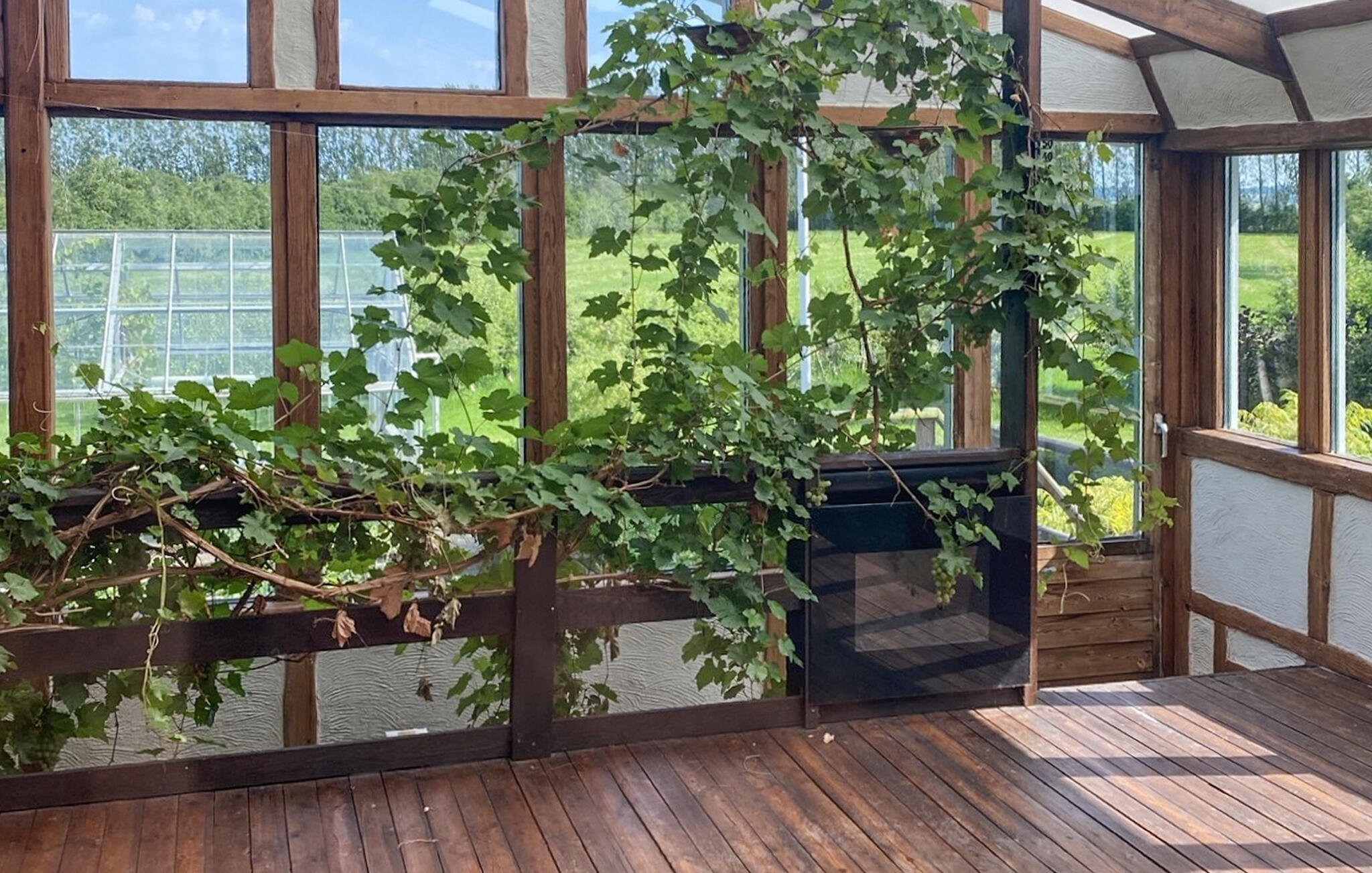 Im Außenbereich laden mehrere möblierte Flächen und ein großzügiger Garten zum Verweilen ein. Nutzen Sie die frischen Kräuter und das Gemüse aus dem Garten zum Kochen, probieren Sie Äpfel von den über tausend Bäumen auf dem Grundstück oder kosten Sie die süßen Trauben der Weinreben, die im Haus wachsen. Am Abend können Sie in geselliger Runde grillen und den Tag unterm Sternenhimmel ausklingen lassen.