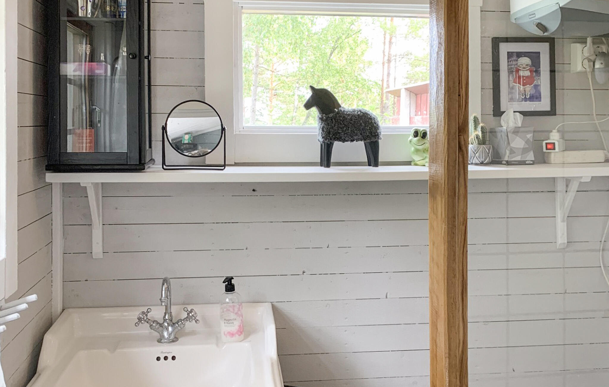 Erleben Sie die Ruhe und Gelassenheit des schwedischen Landlebens. Eingebettet in grüne Natur bietet dieses Haus den idealen Rückzugsort für alle, die Erholung, frische Luft und Nähe zur Schärenküste suchen. Im behaglichen Innenbereich spüren Sie sofort die warme, persönliche Atmosphäre. Kochen Sie in der gemütlichen Küche mit rustikaler Holzarbeitsplatte. Bereiten Sie Ihren Morgenkaffee zu und genießen Sie ihn auf der Veranda mit Blick ins Grüne. Entspannen Sie im Wohnbereich mit Sofa, liebevoll dekorierten Wänden und charmanten Details, die dem Haus einen fröhlichen, individuellen Charakter verleihen.