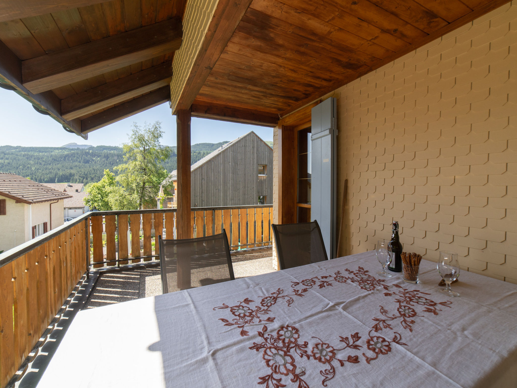 "Central", 3-Zimmer-Haus 75 m2. Objekt geeignet für 8 Erwachsene. 1 Zimmer mit 1 Doppelbett, offenem Kamin und TV. 1 Zimmer mit 2 Betten. 1 Zimmer mit 2 Betten und 1 x 2 Etagenbetten. Küche (Backofen, Geschirrspüler, 4 Induktionskochplatten, Wasserkocher, elektrische Kaffeemaschine, Racletteofen). Dusche/WC, sep. WC. Balkon, Terrasse. Sicht auf die Berge und die Skipiste. Zur Verfügung: Haartrockner. Internet (WLAN, gratis). Bitte beachten: Nichtraucher-Unterkunft. 1 Haustier/Hund erlaubt. BeschreibungDas 4.5 Zimmer Ferienhaus befindet sich im Dorfzentrum von Wildhaus, in unmittelbarer Nähe zum Hotel Sonne, Hotel Hirschen und Spar Supermarkt. Das Haus verfügt über 3 Schlafzimmer, eines davon mit Etagenbett. Im gemütlichen Wohnzimmer gibt's für schöne Stunden einen Flatscreen TV, ein Sofa und einen Esstisch. Eine Terrasse bietet Ihnen in den wärmeren Jahreszeiten einen schönen Platz im Freien. Durch die äusserst zentrale Lage, sind Sie während Ihres Aufenthaltes nicht auf ein Auto angewiesen. Das Ferienhaus eignet sich hervorragend für Familien.Obligatorische oder inklusive Nebenkosten:Bettwäsche : 12,00 CHF /PersonEndreinigung : 160,00 CHF /BuchungHandtücher : 8,00 CHF /PersonHeizung : inklusiveInternetzugang : inklusiveStarter Paket : 25,00 CHF /BuchungOptionale Nebenkosten:Haustiere : 10,00 CHF / TagCheck-in:1.1-31.12 von 00:00 bis 23:59, Montag, Dienstag, Mittwoch, Donnerstag, Freitag, Samstag, SonntagCheck-out: 10:00