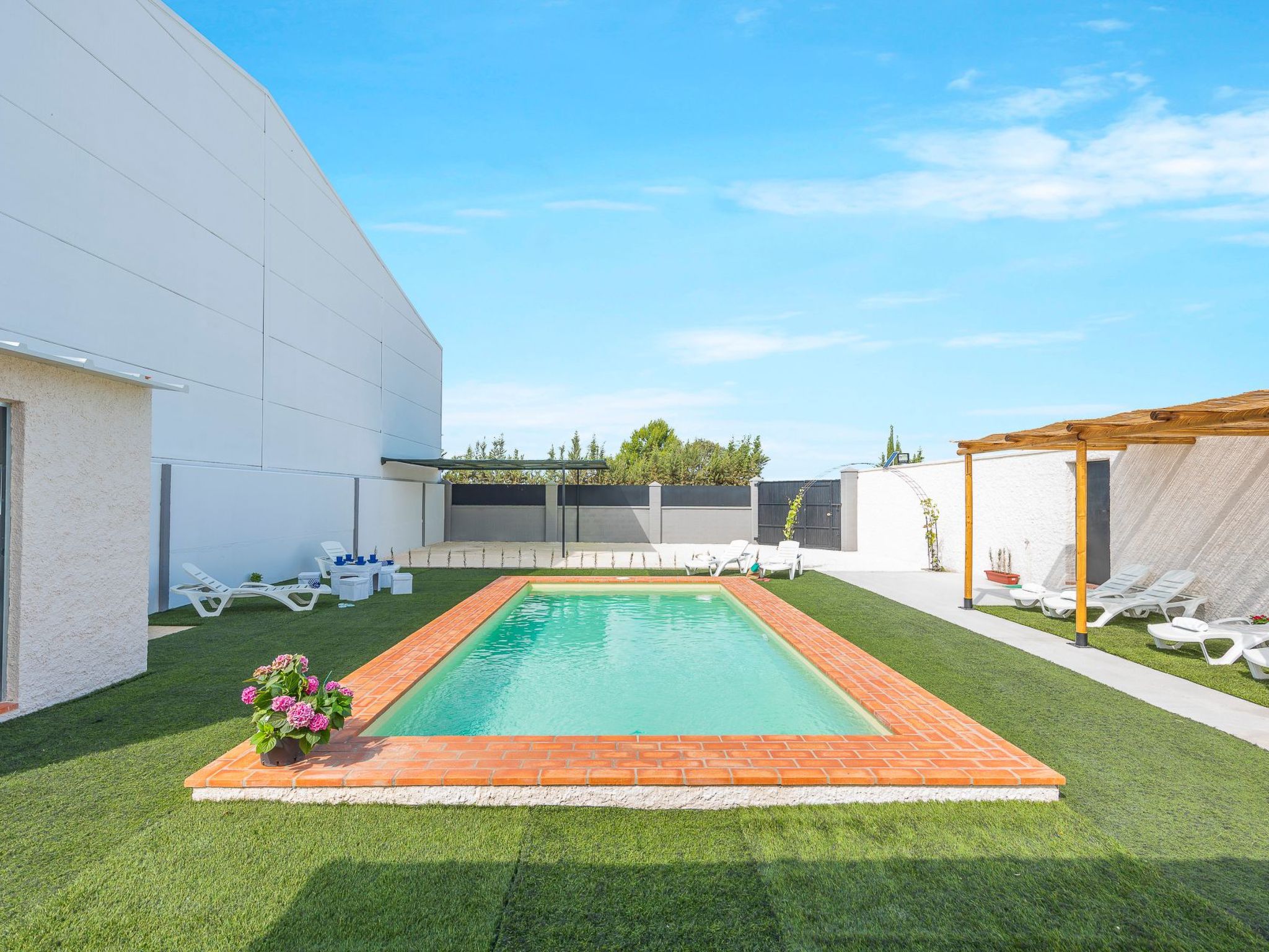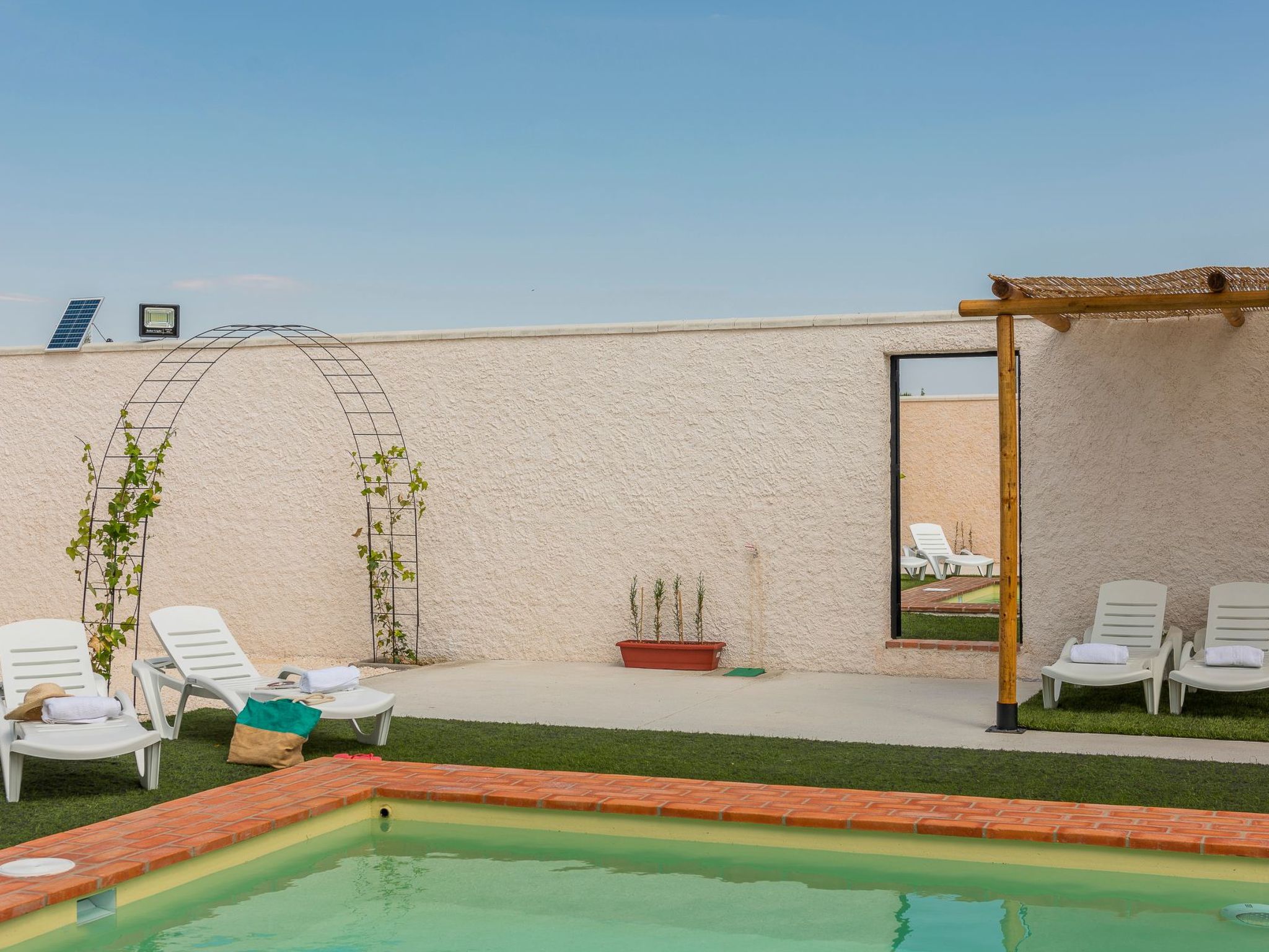 Ländliches Haus María in Lantejuela, Campiña de Sevilla. Ideale Lage, um alle Andalusien zu besuchen. Ländliches Haus mit privatem Schwimmbad in einem typischen Dorf der sevillanischen Landschaft gelegen. Bis zu 8 Personen in 4 Schlafzimmern, Veranda, Pergola, Grill, Wifi,... Lantejuela ist umgeben von den wichtigsten Barockstädten der Campiña von Sevilla wie Osuna, Marchena, Ecija, Estepa,... Eine Stunde von Sevilla und Cordoba. Haus von 95 Quadratmetern auf einem Grundstück von 750 m. Wohn-Esszimmer mit Kamin und offener Küche mit Plasma-TV mit IPTV-Kanälen. Klimaanlage, Wifi. Zum Wohnzimmer hin offene Küche mit Cerankochfeld, Mikrowelle, Geschirrspüler, Kühlschrank, Backofen,... 4 Schlafzimmer mit Einbauschränken und Klimaanlage. 4 Schlafzimmer mit Klimaanlage und Einbauschränken. Platz für 8 Personen. Schlafzimmer 1. 12,8 m2. Doppelbett 1,80 x 1,90 m (umwandelbar in 2 Einzelbetten). Schlafzimmer 2. 12,8 m2. Doppelbett 1,80 x 1,90 m (umwandelbar in 2 Einzelbetten) Schlafzimmer 3. 11 m2. 2 Einzelbetten von 0,90 x 1,90 m. (umwandelbar in ein Doppelbett) Zimmer 4. 11 m2. 2 Einzelbetten von 0,90 x 1,90 m. (umwandelbar in ein Doppelbett). Kinderbett und Hochstuhl vorhanden 2 Bäder mit Dusche Draußen 24 m2 Veranda mit Tisch im Freien Pergola aus Holz neben dem Grill. Außenbad mit Waschmaschine. Steingrill. Schwimmbad von 7 x 3,5 m und 1,10 bis 1,50 m tief. Kunstrasenfläche mit Liegestühlen und Sonnensegel. Überdachter Parkplatz für 2 Fahrzeuge. Gepflegte Unterkunft mit reichlich Platz, eingezäuntes Grundstück. Unterkunft Regeln: * Im Preis inbegriffen: angemessener Verbrauch von Wasser, Strom, Gas. Bettwäsche und Badetücher. ACHTUNG: Lassen Sie die Klimaanlage nicht eingeschaltet, wenn Sie sich nicht in der Unterkunft aufhalten oder wenn Fenster und Türen geöffnet sind. Ein Missbrauch der Energie kann zu zusätzlichen Kosten führen. * Der Ladeservice für Elektrofahrzeuge ist nicht im Verbrauchspreis des Ferienhauses enthalten. Wenn Sie diesen Service in Anspruch nehmen möchten, erkundigen Sie sich bitte bei uns nach den geltenden Tarifen und Bedingungen. * Wir bitten Sie, die Unterkunft bei Ihrer Abreise sauber zu hinterlassen, da eine unaufgeräumte Unterkunft zusätzliche Reinigungskosten verursachen kann. * Bitte wenden Sie sich bei allen Bedürfnissen oder Unannehmlichkeiten, die Sie während Ihres Aufenthalts haben, sofort an die in der Buchungsbestätigung angegebenen Kontaktpersonen. Reklamationen werden nur während des Aufenthaltes bearbeitet. * Partys, Besuche oder mehr als die gebuchten Personen sind nur nach vorheriger Anmeldung und Bezahlung erlaubt. * Die Ankunfts- und Abreisezeit ist mit der Kontaktperson zu vereinbaren. Juli und August oder mit anderen Reisenden, die am gleichen Tag anreisen: Ankunft ab 16:00 Uhr und Abreise vor 10:00 Uhr. * Die Kaution wird bei der Ankunft hinterlegt und von BIZUM innerhalb von maximal 48 Stunden zurückerstattet, wenn keine Schäden vorliegen. * Wenn das Haus Sie aufnimmt und Sie mit einem Haustier kommen, ist es nicht erlaubt, das Schwimmbad zu betreten. Die Kaution wird nicht zurückerstattet, bis wir überprüft haben, dass es keine Schäden gab und alle Exkremente gesammelt wurden. * Stornierungsbedingungen in der Bestätigung des Buchungsbelegs. * Es ist obligatorisch, alle Gäste vor der Ankunft einzuchecken. Basisinformationen - Erlaubte Haustiere: 1 - erlaubte Hundegröße: klein (bis 30 cm) - befindet sich in: Casa Rural - Art d. Gebäudes: Einfamilienhaus - Etage, auf der sich das Objekt befindet: EG - Gesamtanzahl d. Stockwerke im Gebäude über EG: 0 - Grundstücksfläche: 750 m² - Baujahr: 2023 - freistehend - keine Einsicht von der Straße - keine Jugendgruppen - Schlafzimmeranzahl: 4 - Badezimmeranzahl: 2 Top Merkmale - WLAN - Klimaanlage: überall - Heizung: überall - Terrasse - Garten: zur alleinigen Nutzung - komplett eingefriedet (mit Mauer, Zaun oder Hecke) - Outdoorpool - ? zur alleinigen Nutzung - ? maximale Tiefe: 150 cm - ? Länge: 700 cm - ? Breite: 350 cm - Private PKW-Stellplätze insgesamt für diese Unterkunft: 2 - ? davon Carport-Stellplätze: 2 Schlafen Schlafzimmer 1 - 2x Einzelbett Schlafzimmer 10 - 2x Einzelbett Schlafzimmer 4 - 2x Einzelbett Schlafzimmer 7 - 2x Einzelbett Badezimmer Badezimmer 1 - Dusche - Waschbecken - Toilette Badezimmer 4 - Dusche - Waschbecken - Toilette Kochen/Wohnen - Kaffeemaschine: Kaffeemaschine - Kühl-/Gefrierschrank: Gefrierfach, Tiefkühlschrank, Kühlschrank - Herd: Glaskeramikkochfeld, Herd - Dunstabzugshaube - Backofen - Toaster - Mikrowelle - Spülmaschine - Anzahl Esstische: 1 - Gesamtzahl Sitzplätze: 8 - Anzahl Wohnzimmer: 7 - Kamin Entertainment - Fernseher: Sat.-TV Hauswirtschaft - Waschmaschine: zur alleinigen Nutzung im Objekt - Bügeleisen Außenbereich - Veranda - Grill: Grill - Außendusche Umgebung - nächstgelegene Ortsmitte: 1,5 km - Lebensmittelhandel: 1,5 km - Bars/Clubs/Ausgehen: 1,5 km - Cafés/Restaurants: 1,5 km - Bahnhof: 16,0 km - Flughafen: 85,0 km - Strand: 138,0 km Besonderheiten - Bauernhaus