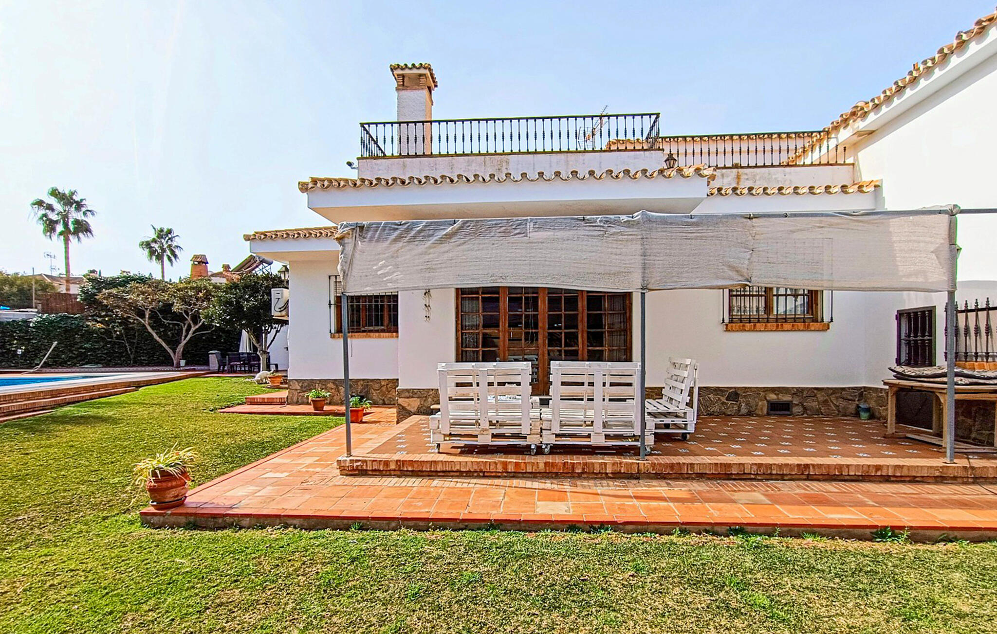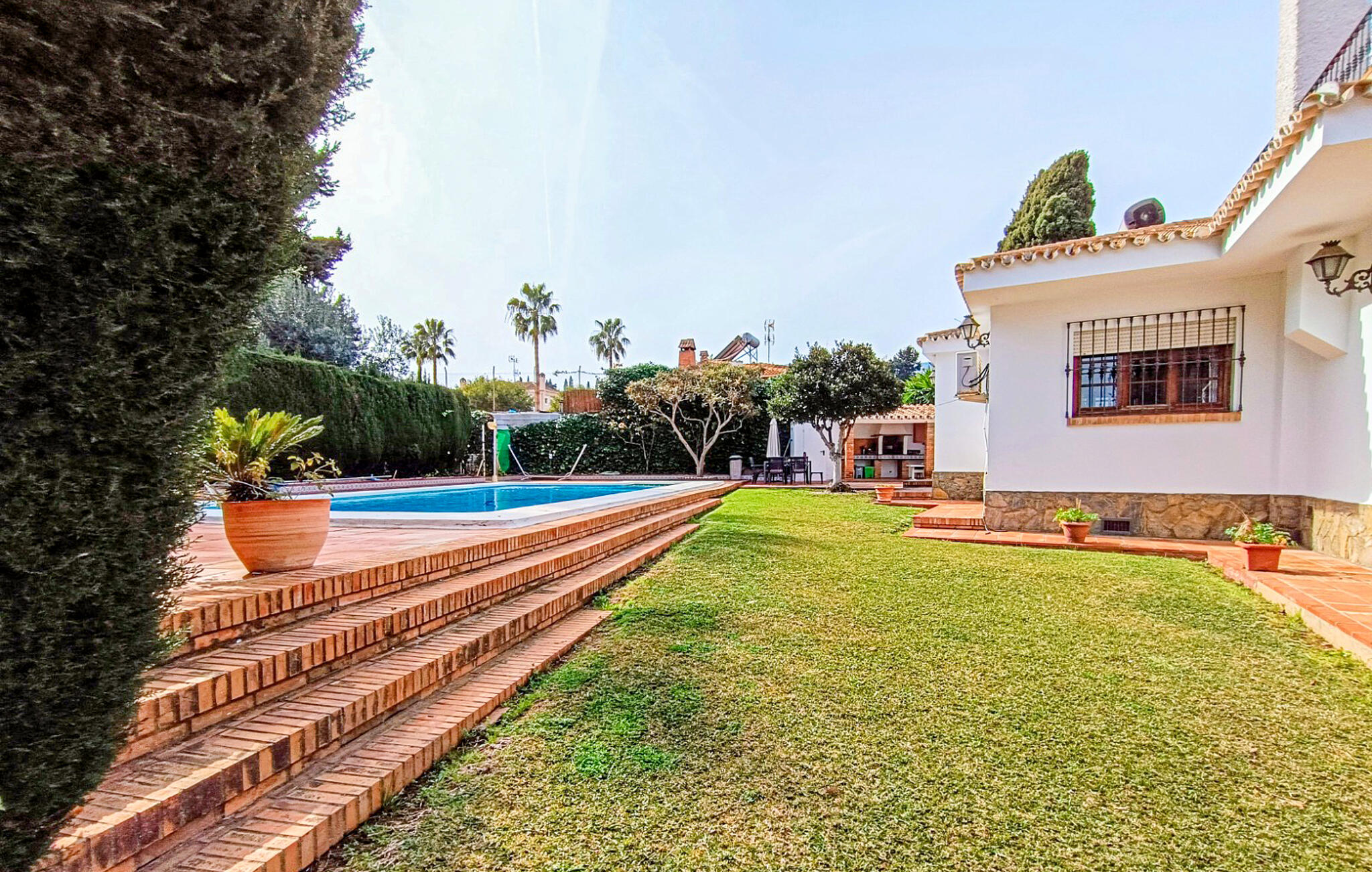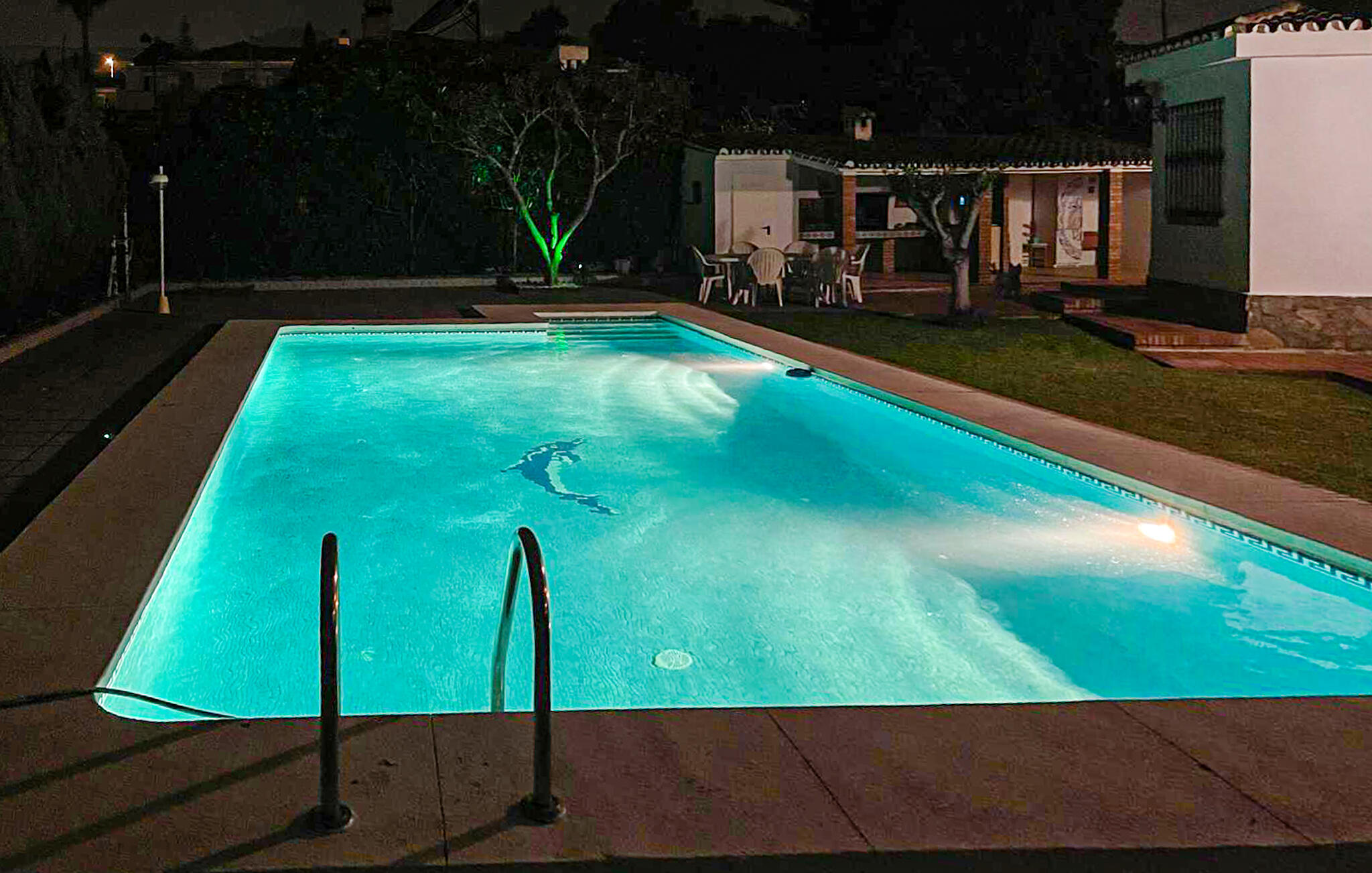 Erfrischen Sie sich gleich nach dem Aufstehen im herrlichen Pool, der dank stimmungsvoller Beleuchtung auch zum nächtlichen Baden einlädt. Gönnen Sie sich erholsame Siestas auf der Sonnenliege und genießen Sie die lauen Sommernächte bei einem Grillabend auf der Terrasse.