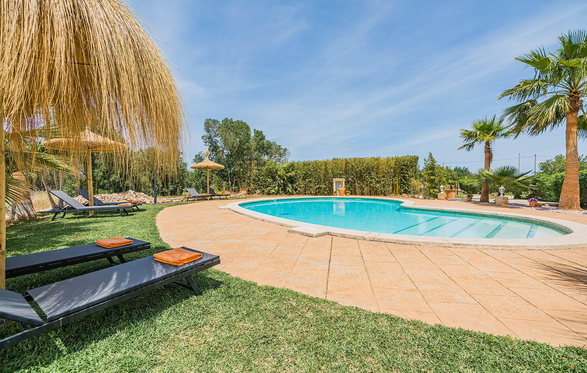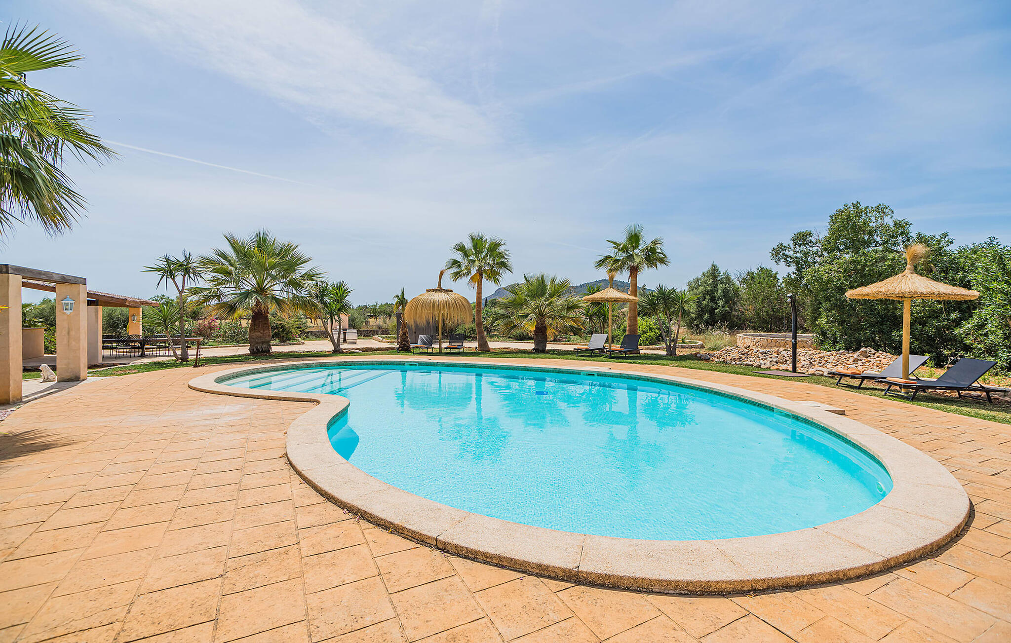 Eingebettet im Herzen Mallorcas ist die Finca „Aria“ mit ihrem automatischen Tor, dem großen Eingang und ausreichend Parkplätzen ein Urlaubsparadies für alle.